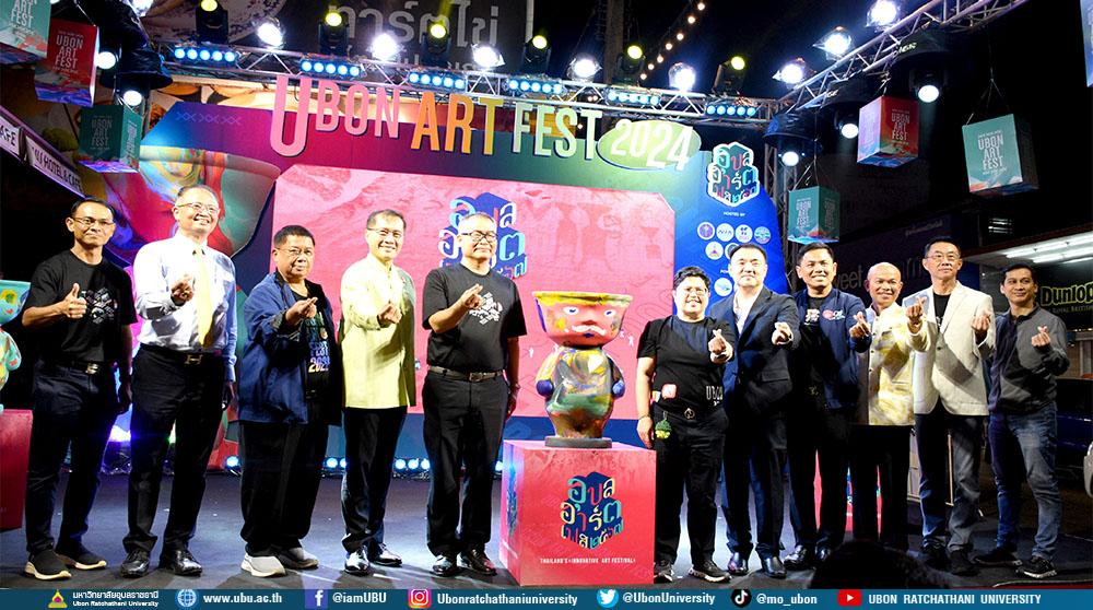 มหาวิทยาลัยอุบลราชธานี โดย ศาสตราจารย์ ดร.ทวนทอง จุฑาเกตุ รองอธิการบดีฝ่ายวิจัยและนวัตกรรมและรองศาสตราจารย์ ดร.ชวลิต ถิ่นวงศ์พิทักษ์ ผู้อำนวยการโครงการอุทยานวิทยาศาสตร์ ร่วมพิธีเปิด “นิทรรศการแสดงงานศิลปะเมืองอุบลฯ2567(UBON ART FEST 2024)ครั้งที่ 3” เมื่อวันศุกร์ที่ 13 ธันวาคม 2567 ณโรงแรมยูโฮเทลอุบลราชธานีในโอกาสที่ กระทรวงการอุดมศึกษา วิทยาศาสตร์ วิจัยและนวัตกรรม โดยสำนักงานนวัตกรรมแห่งชาติ (องค์การมหาชน) หรือ NIA ร่วมกับจังหวัดอุบลราชธานีหอการค้าจังหวัดอุบลราชธานีมหาวิทยาลัยอุบลราชธานีและมหาวิทยาลัยราชภัฏอุบลราชธานี พร้อมพันธมิตรจากภาครัฐและเอกชนกว่า50 องค์กร ร่วมกันจัดงาน “นิทรรศการแสดงงานศิลปะเมืองอุบลฯ2567(UBON ART FEST 2024) ครั้งที่ 3” โดยได้รับเกียรติจาก นายวีระศักดิ์ โควสุรัตน์ อดีตรัฐมนตรีว่าการกระทรวงท่องเที่ยวและกีฬา แสดงวิสัยทัศน์ “การพัฒนาระบบนวัตกรรมในพื้นที่จังหวัดอุบลราชธานีผ่านกิจกรรม UBON ART FEST 2024” ดร.กริชผกา บุญเฟื่อง ผู้อำนวยการสำนักงานนวัตกรรมแห่งชาติ (องค์การมหาชน) กล่าวแสดงความยินดีในฐานะผู้สนับสนุนหลักของการจัดงาน ว่าที่พันตรี อดิศักดิ์ น้อยสุวรรณ ผู้ว่าราชการจังหวัดอุบลราชธานี ให้เกียรติเป็นประธานเปิดกล่าวต้อนรับและนายธานิน ภัทรธนเศรษฐ์ประธานที่ปรึกษากลุ่มนักธุรกิจรุ่นใหม่ และประธานจัดงาน Ubon Art Fest 2024 กล่าวรายงานและวัตถุประสงค์การจัดงานครั้งนี้ เพื่อสนับสนุนซอฟต์พาวเวอร์ในพื้นที่ท้องถิ่น และแสดงงานศิลปะสร้างสรรค์ให้สอดรับกับสังคมในยุคดิจิทัลของจังหวัดอุบลราชธานี ซึ่งเป็นส่วนหนึ่งที่จะช่วยขับเคลื่อนระบบเศรษฐกิจในพื้นที่ให้มีความเข้มแข็งได้อย่างยั่งยืน ตั้งแต่วันที่13– 15 ธันวาคม2567 ณโรงแรมยูโฮเทลอุบลราชธานี และบริเวณเลียบถนนอุปราช