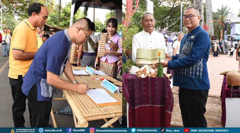 มหาวิทยาลัยอุบลราชธานี โดย ศาสตราจารย์ ดร.ทวนทอง จุฑาเกตุ รองอธิการบดีฝ่ายวิจัยและนวัตกรรม มอบหมาย ดร.สมปอง เวฬุวนาธร อาจารย์ประจำคณะวิทยาศาสตร์ และผู้วิจัยโครงการวิจัย “การสืบสานและต่อยอดทุนทางวัฒนธรรมโขงเจียมเพื่อพัฒนาเศรษฐกิจชุมชน” เป็นตัวแทนมหาวิทยาลัยพร้อมผู้วิจัย ลงพื้นที่และร่วมเป็นเกียรติพิธีเปิดโครงการพัฒนาสินค้าและผู้ประกอบการเพื่อการค้าการลงทุนสู่สากล กิจกรรม OTOP ภูมิภาค นวัตกรรมแห่งภูมิปัญญา 2568 ภายใต้ชื่องาน “โขงเจียมถักทอศิลป์ กินริมโขง” โดยมี ว่าที่พันตรีอดิศักดิ์ น้อยสุวรรณ ผู้ว่าราชการจังหวัดอุบลราชธานี ให้เกียรติเป็นประธาน โดยมีวัตถุประสงค์การจัดงานครั้งนี้ เพื่อส่งเสริมผู้ประกอบการ OTOP และกลุ่มอาชีพในชุมชนให้มีรายได้เพิ่มขึ้น ตลอดจนส่งเสริมการท่องเที่ยวชุมชน ในระหว่างวันที่ 25 – 27 เมษายน 2568 ที่ผ่าน ณ ลานชมจันทร์ บริเวณริมแม่น้ำโขง ตำบลโขงเจียม อำเภอโขงเจียม จังหวัดอุบลราชธานี