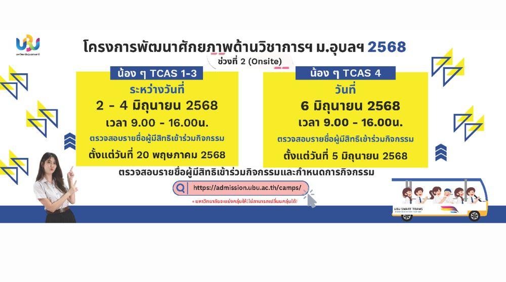 ขอแจ้งกำหนดการ และรายละเอียดกิจกรรมโครงการพัฒนาศักยภาพด้านวิชาการและวิชาชีพเพื่อเตรียมความพร้อมเข้าศึกษาในมหาวิทยาลัยอุบลราชธานี 2568