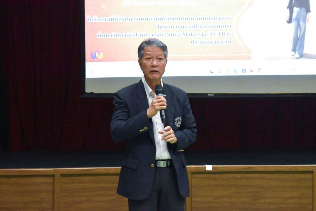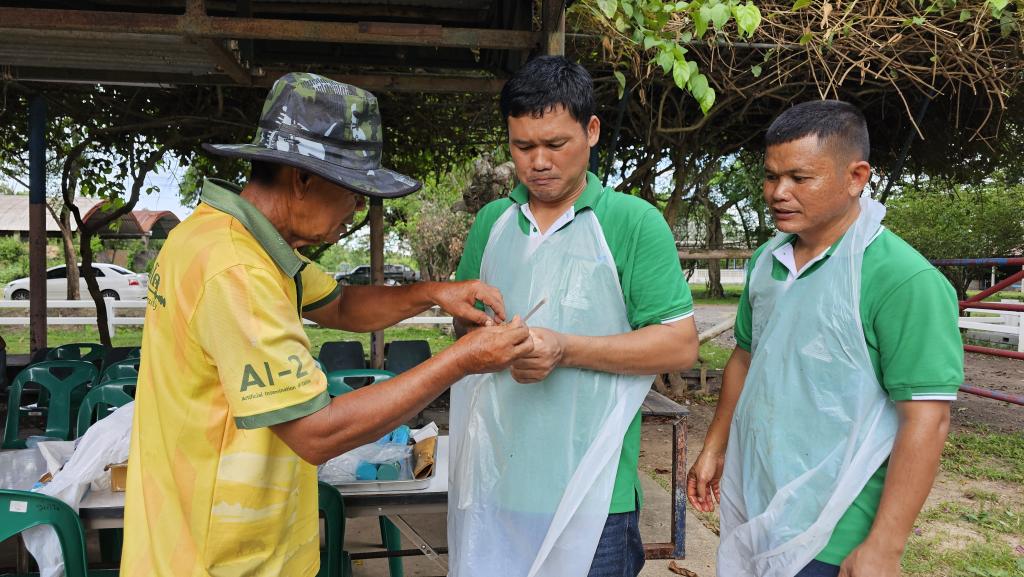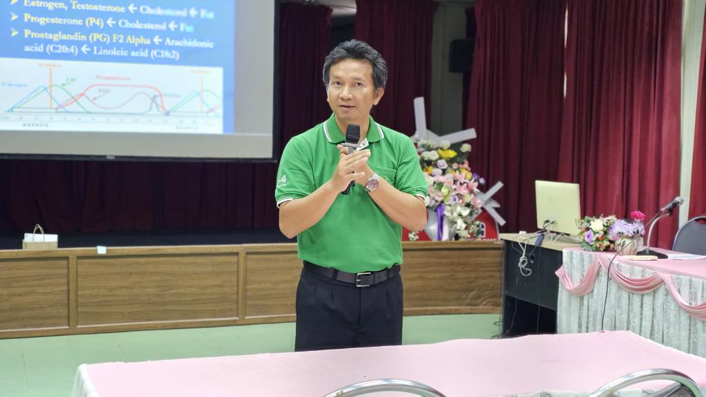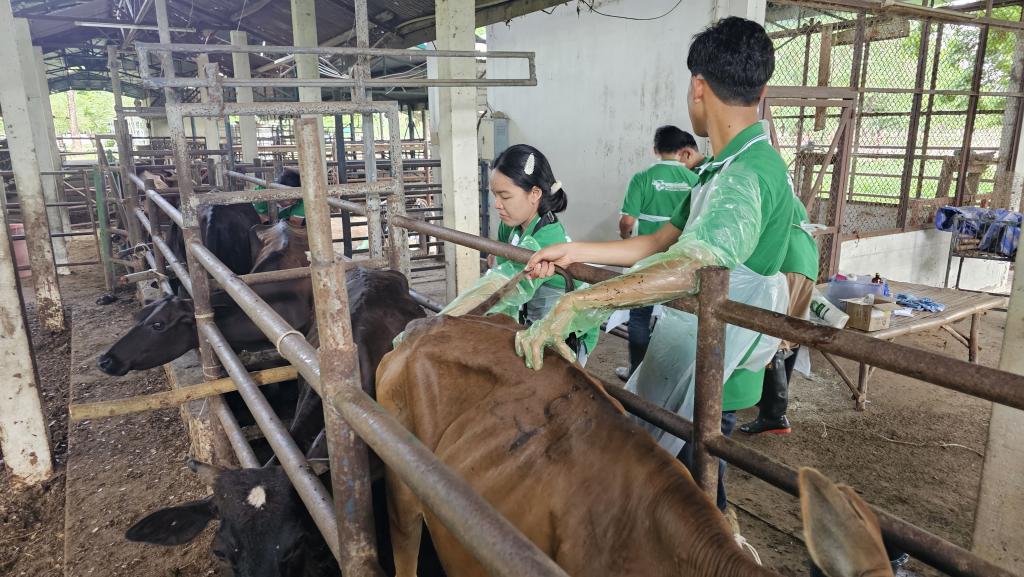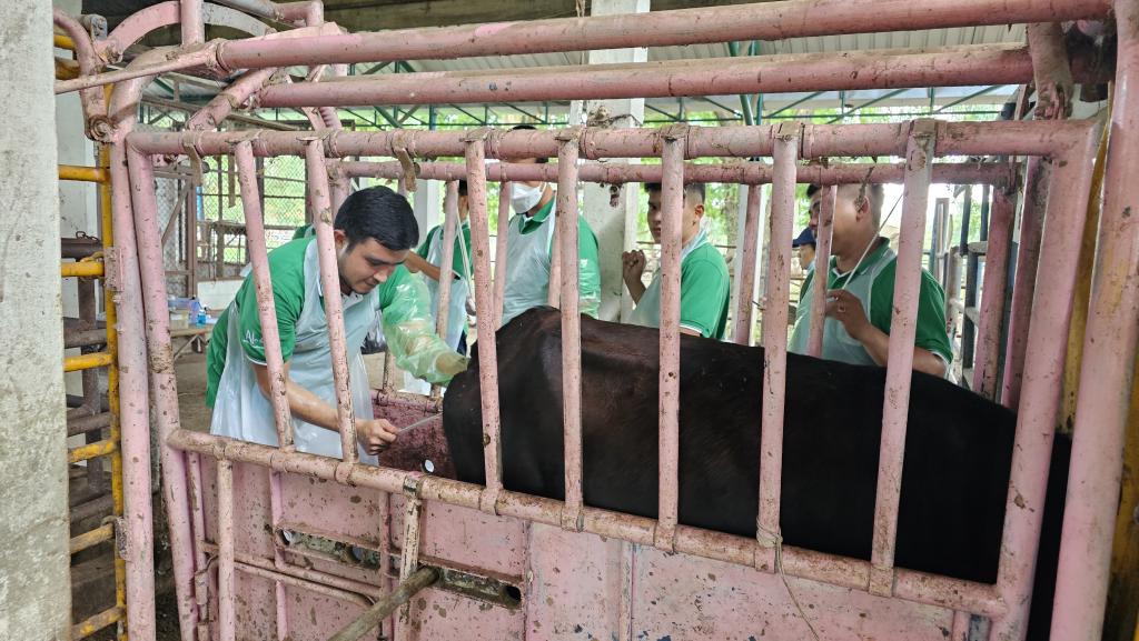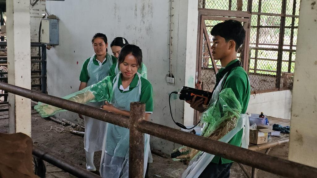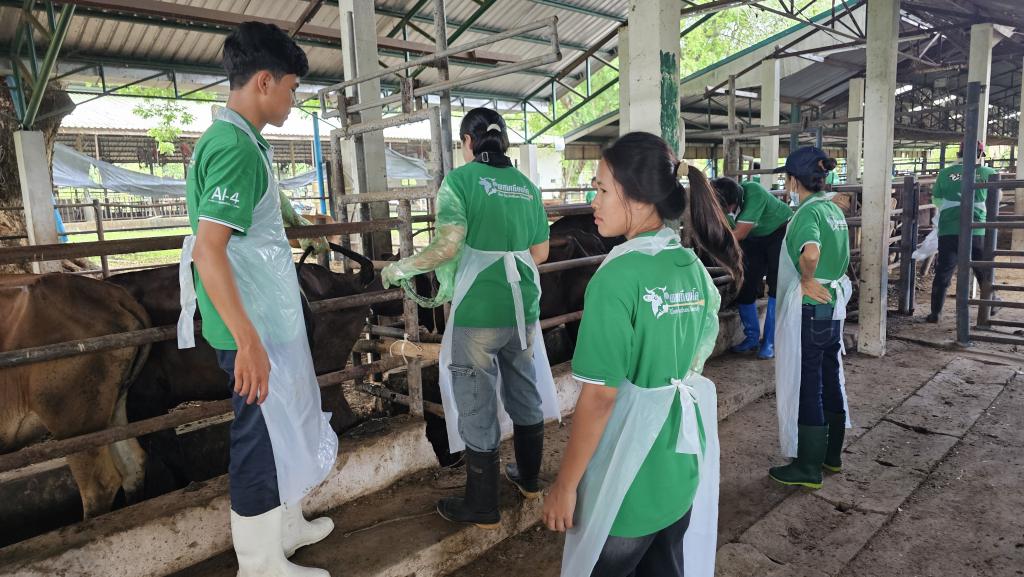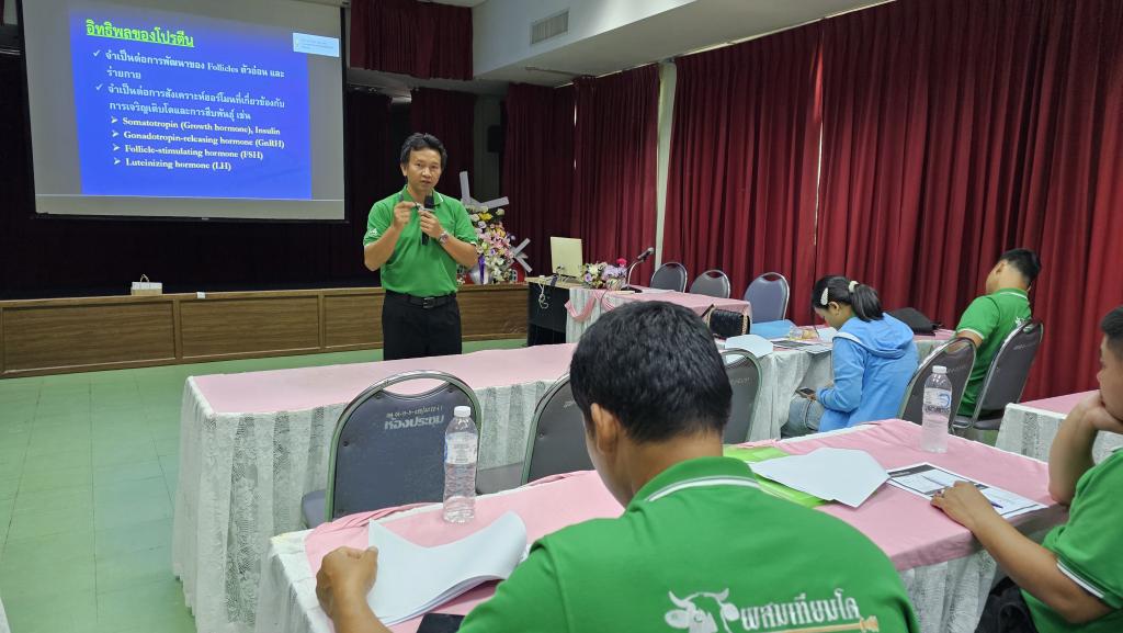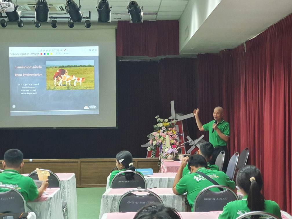 ดร.นรินทร บุญพราหมณ์ คณบดีคณะเกษตรศาสตร์ กล่าวว่าโครงการอบรมเชิงปฏิบัติการ หลักสูตรระยะสั้น การผสมเทียมโค คณะเกษตรศาสตร์ จัดมาอย่างต่อเนื่องเป็นรุ่นที่ 4 ซึ่งมีเนื้อหาการอบรมครอบคลุมการผสมเทียมโคที่มีประสิทธิภาพ แบ่งการอบรมออกเป็นภาคทฤษฎีและปฏิบัติ โดยภาคทฤษฎีผู้เข้าอบรมได้ศึกษาเรื่องกายวิภาคและสรีรวิทยาของโคเพศเมีย การวางแผนและควบคุมระบบสืบพันธุ์ การประเมินคุณภาพน้ำเชื้อโค เทคนิคการเหนี่ยวนำการเป็นสัดโดยใช้ฮอร์โมน และการวิเคราะห์พันธุกรรมจากแคตตาล็อกน้ำเชื้อ ซึ่งเป็นพื้นฐานสำคัญของการวางแผนผสมพันธุ์ในระยะยาว ส่วนภาคปฏิบัติ เน้นการฝึกมือจริง อาทิ การตรวจสอบและล้วงคลำระบบสืบพันธุ์โค การสอดปืนผสมเทียมในโคเพศเมียที่ได้รับการเหนี่ยวนำให้เป็นสัด การตรวจการตั้งท้องด้วยเทคนิคแบบดั้งเดิม และด้วยเทคโนโลยีอัลตราซาวด์ ตลอดจนฝึกการล้างมดลูกและจัดการสุขภาพสืบพันธุ์โดยรวม ซึ่งล้วนเป็นทักษะเฉพาะทางที่ต้องการการฝึกฝนจากผู้มีประสบการณ์จริง