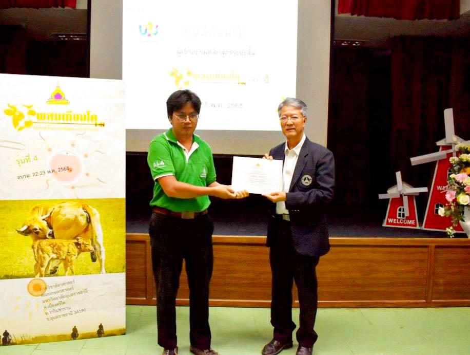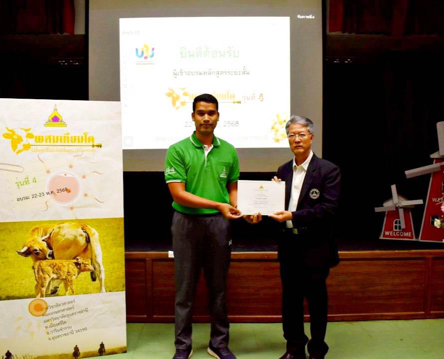 มหาวิทยาลัยอุบลราชธานี โดยคณะเกษตรศาสตร์ จัดโครงการอบรมเชิงปฏิบัติการ หลักสูตรระยะสั้น การผสมเทียมโค รุ่นที่ 4 โดยมี ดร.นรินทร บุญพราหมณ์ คณบดีคณะเกษตรศาสตร์ เป็นประธาน ซึ่งมี คณาจารย์ภาควิชาสัตวศาสตร์ คณะเกษตรศาสตร์ เป็นวิทยากร ถ่ายทอดความรู้เพิ่มทักษะการผสมเทียมโคทั้งภาคทฤษฎีและภาคปฏิบัติ ได้รับความสนใจจากเกษตรกร เจ้าของฟาร์ม และประชาชนทั่วไปเข้าร่วมอบรม จำนวน 30 คน ณ ฟาร์มสัตว์เคี้ยวเอื้อง คณะเกษตรศาสตร์ ระหว่างวันที่ 22-23 พฤษภาคม 2568 ที่ผ่านมา