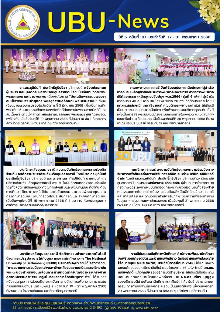 UBU NEWS ปีที่ 5 ฉบับที่ 107 ประจำวันที่ 17 - 31 พฤษภาคม 2568
