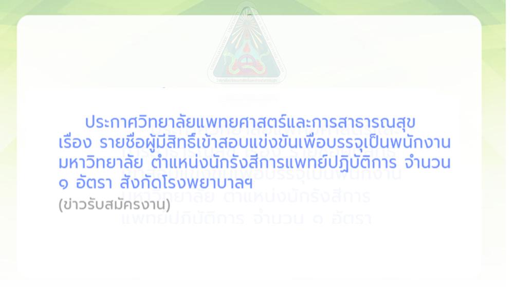 ตำแหน่งนักรังสีการแพทย์ปฏิบัติการ จำนวน ๑ อัตรา สังกัดโรงพยาบาลมหาวิทยาลัยอุบลราชธานี