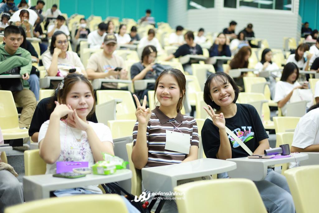 มหาวิทยาลัยอุบลราชธานี โดยองค์การนักศึกษา จัดกิจกรรมต้อนรับนักศึกษาใหม่ผ่านกิจกรรมอบอุ่นและสร้างสรรค์ โครงการ UBUwalk rallyพี่พาน้องทัวร์ สู่รั้วบ้านเลขที่ 85 ม.อุบลฯ โดยมี ผู้ช่วยศาสตราจารย์ ดร.ปรีชา บุญจูง รองอธิการบดีฝ่ายพัฒนานักศึกษาและศิษย์เก่าสัมพันธ์ เป็นประธาน และ นางสาวอภิฤดี ปราบพล รองนายกองค์การนักศึกษา คนที่ 1 กล่าวรายงาน พร้อมนำน้องใหม่รู้จักมหาวิทยาลัย สิ่งอำนวยความสะดวก และการชีชีวิตในรั้วมหาวิทยาลัยอย่างมีความสุข ซึ่งมีนักศึกษาชั้นปีที่ 1 เข้าร่วมกิจกรรมจำนวนมาก ณ อาคารเรียนรวม 5 ห้อง CLB5102 เมื่อวันที่ 6มิถุนายน 2568 ที่ผ่านมา