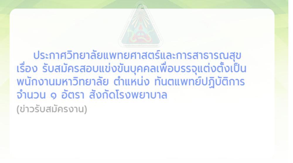 ตำแหน่ง ทันตแพทย์ปฏิบัติการ จำนวน ๑ อัตรา สังกัดโรงพยาบาลมหาวิทยาลัยอุบลราชธานี