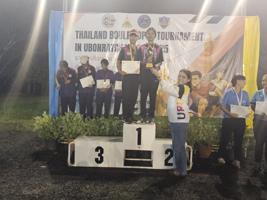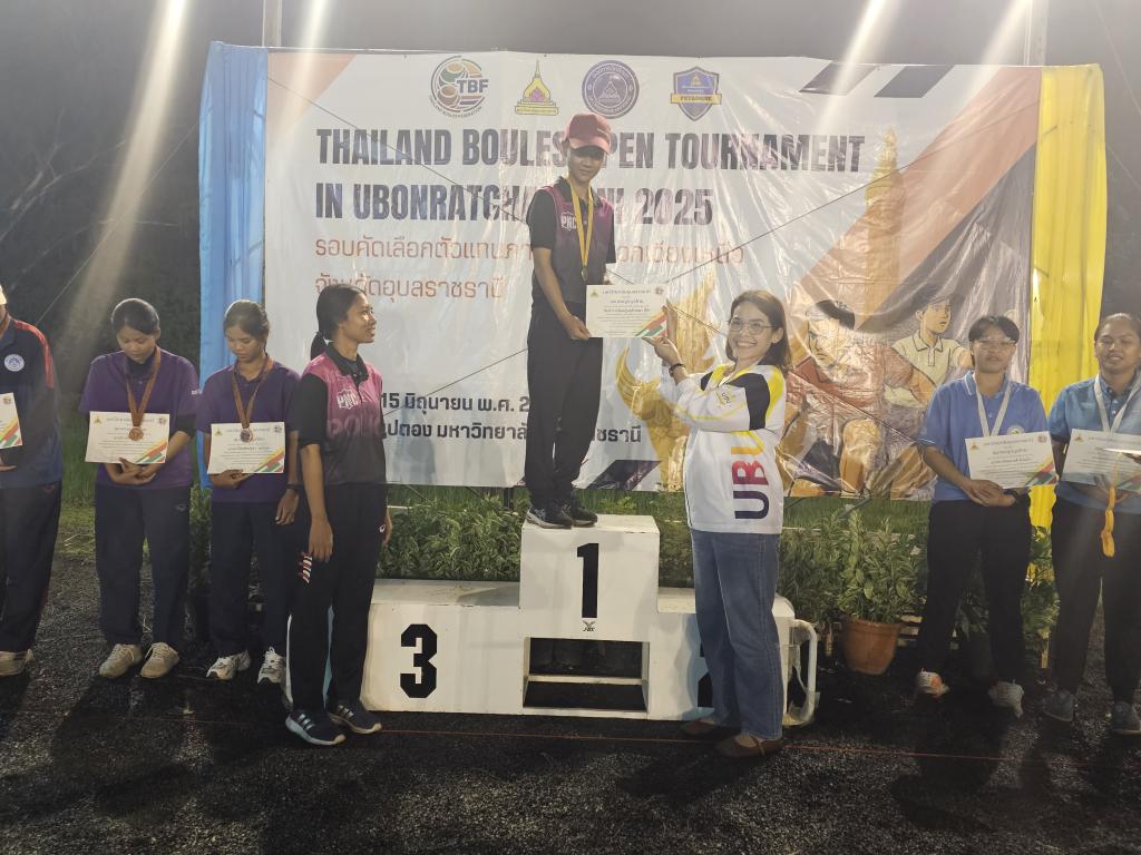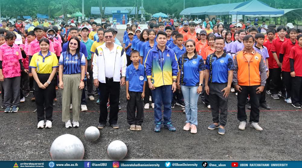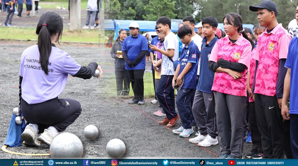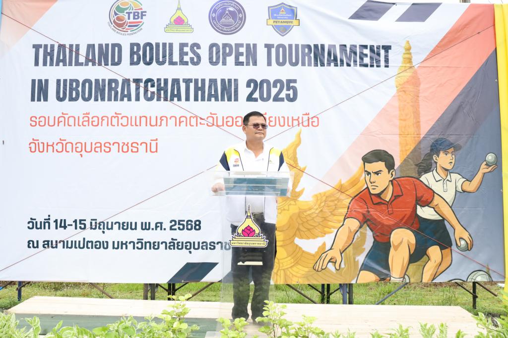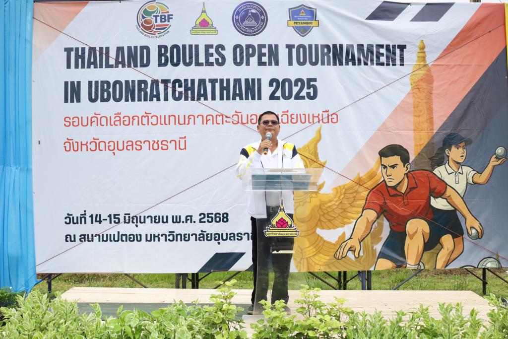 ชมรมเปตอง มหาวิทยาลัยอุบลราชธานี ร่วมกับ สมาคมลูกบลูไทย จัดการแข่งขันไทยแลนด์ บลูโอเพ่น ทัวร์นาเม้นต์ จังหวัดอุบลราชธานี ประจำปี 2568 “THAILAND BOULES OPEN TOURNAMENT IN UBONRATCHATHANI 2025” รอบคัดเลือกตัวแทนภาคตะวันออกเฉียงเหนือโดยมี ผู้ช่วยศาสตราจารย์ ดร.ปรีชา บุญจูง รองอธิการบดีฝ่ายพัฒนานักศึกษาและศิษย์เก่าสัมพันธ์ เป็นประธาน และนางสาวชยภา คุ้มรักษาประธานชมรมเปตอง มหาวิทยาลัยอุบลราชธานี กล่าวรายงาน แบ่งการแข่งขันเป็น 4 ประเภท ได้แก่ ประเภทคู่ชาย ประเภทคู่หญิง ประเภทคู่เยาวชนชาย ประเภทคู่เยาวชนหญิง มีนักกีฬาเข้าร่วมการแข่งขันจากทั่วภาคตะวันออกเฉียงเหนือ จำนวน 230 คู่ ณ สนามเปตอง มหาวิทยาลัยอุบลราชธานี ระหว่างวันที่ 14 – 15 มิถุนายน 2568 ที่ผ่านมา