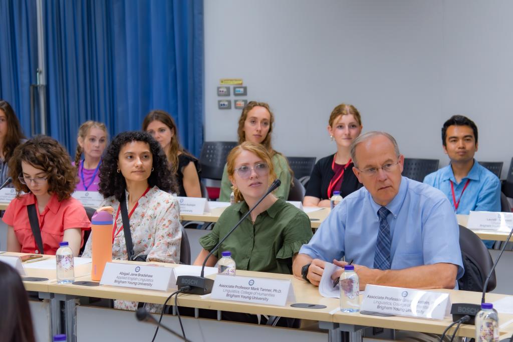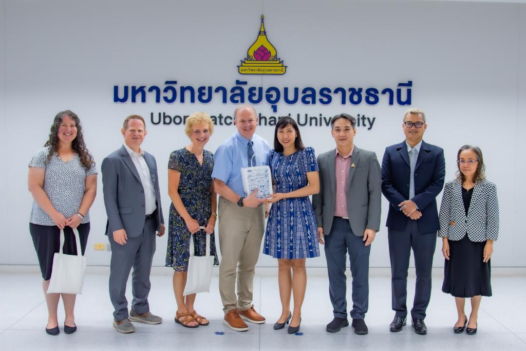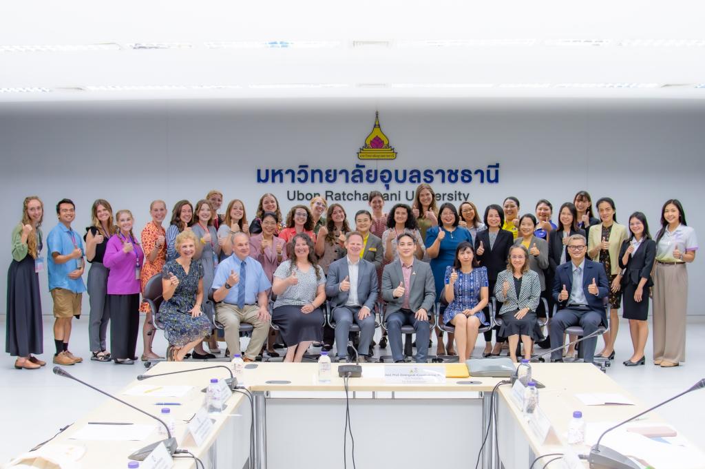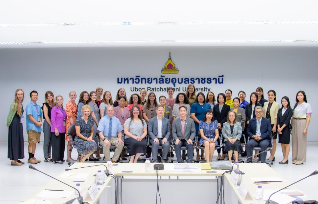 วันที่ 23 มิถุนายน 2568 สำนักงานวิเทศสัมพันธ์และการศึกษานานาชาติ มหาวิทยาลัยอุบลราชธานี จัดพิธีต้อนรับและปฐมนิเทศ คณะอาจารย์และนักศึกษาจาก Brigham Young University (BYU) ประเทศสหรัฐอเมริกา โดยมี Associate Professor Dr. Grant Eckstein และ Associate Professor Dr. Mark Tanner จากภาควิชาภาษาศาสตร์ คณะมนุษยศาสตร์ พร้อมด้วยนักศึกษา จำนวน 16 คน ซึ่งเดินทางมาร่วมฝึกสอนภาษาอังกฤษ แก่บุคลากรและนักศึกษาของ มหาวิทยาลัยอุบลราชธานี ระหว่างวันที่ 22 มิถุนายน – 2 สิงหาคม 2568 ภายใต้โครงการ UBU-BYU Project 2025