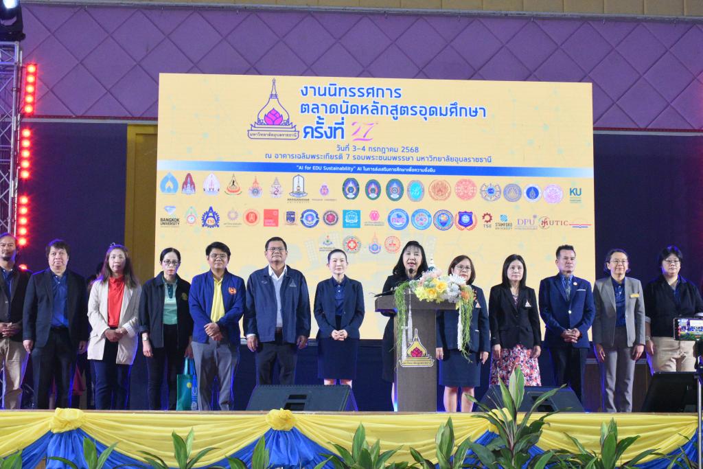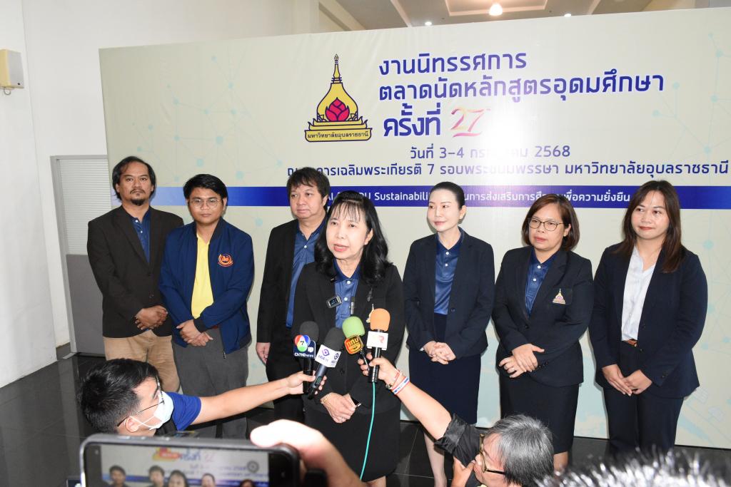 มหาวิทยาลัยอุบลราชธานี ร่วมกับ สมาคมที่ประชุมอธิการบดีแห่งประเทศไทย และสถาบันการศึกษาทั้งภาครัฐและเอกชน จัด“นิทรรศการตลาดนัดหลักสูตรระดับอุดมศึกษา” ครั้งที่ 27 มีผู้บริหารสถานศึกษา ครู/อาจารย์แนะแนว บุคลากรทางการศึกษาในเขตพื้นที่บริการภาคตะวันออกเฉียงเหนือ 20 จังหวัด รวม 400 คน และนักเรียนในระดับมัธยมศึกษาตอนปลาย 17,000 คน แจ้งความประสงค์เข้าร่วมกิจกรรมครั้งนี้ โดยมี รองศาสตราจารย์ ดร.ชุตินันท์ ประสิทธิ์ภูริปรีชา อธิการบดีมหาวิทยาลัยอุบลราชธานี เป็นประธานและกล่าวต้อนรับนักเรียน นิสิตนักศึกษา ครู ผู้ปกครอง หน่วยงานและผู้สนใจเข้าชมนิทรรศการตลาดนัดหลักสูตรระดับอุดมศึกษา สำหรับในครั้งนี้มีมหาวิทยาลัยทั้งภาครัฐและเอกชนร่วมออกบูธนิทรรศการ 75บูธ จาก 45 สถาบัน โดยแบ่งเป็นมหาวิทยาลัยภาครัฐ 21 สถาบัน และภาคเอกชน 24 สถาบัน ทั้งนี้ เพื่อเผยแพร่ และประชาสัมพันธ์การให้ข้อมูลด้านการศึกษาต่อในระดับอุดมศึกษาทั้งภาครัฐและเอกชน ให้กับนักเรียน ผู้ปกครอง และประชาชนทั่วไปในส่วนภูมิภาคทั่วประเทศ เพื่อขยายโอกาสทางการศึกษาให้นักเรียนในเขตพื้นที่บริการ ภาคตะวันออกเฉียงเหนือ 20 จังหวัด เพื่อสร้างเครือข่ายความร่วมมือระหว่างสถาบันอุดมศึกษา สถานศึกษา และชุมชน เพื่อยกระดับคุณภาพทางการศึกษาในเขตพื้นที่บริการภาคตะวันออกเฉียงเหนือ และเพื่อประชาสัมพันธ์หลักสูตร/คณะ มหาวิทยาลัยอุบลราชธานี ตลอดจนส่งเสริมภาพลักษณ์ที่ดีของมหาวิทยาลัยอุบลราชธานี ระหว่างวันที่ 3 - 4 กรกฎาคม 2568 ณ อาคารเฉลิมพระเกียรติ 7รอบพระชนมพรรษา มหาวิทยาลัยอุบลราชธานี