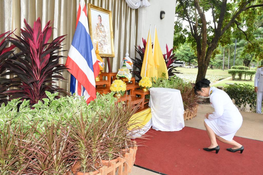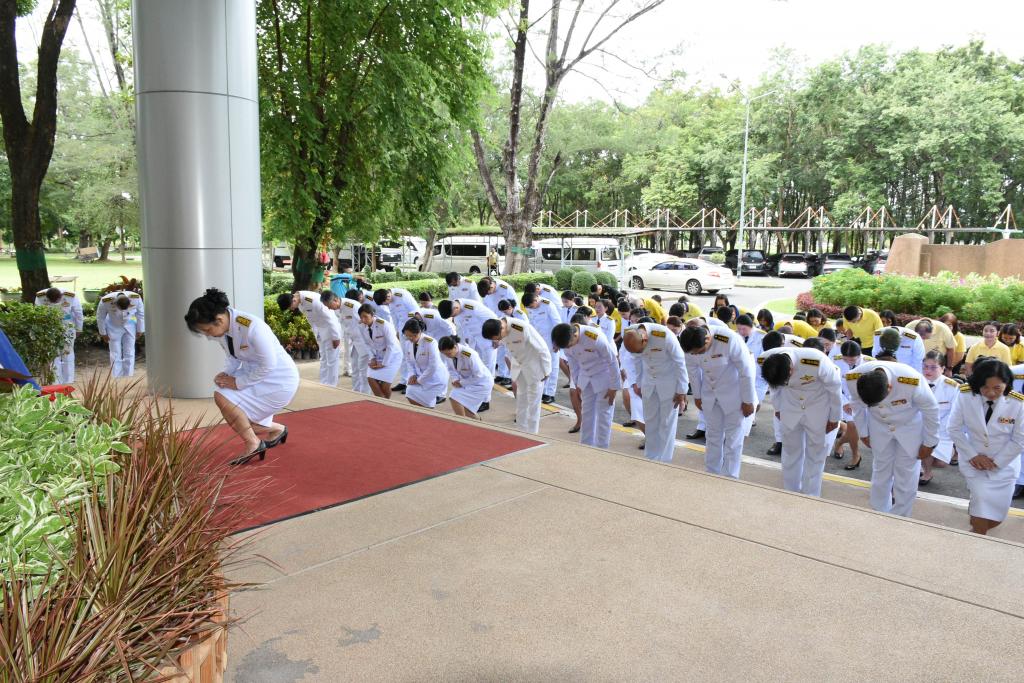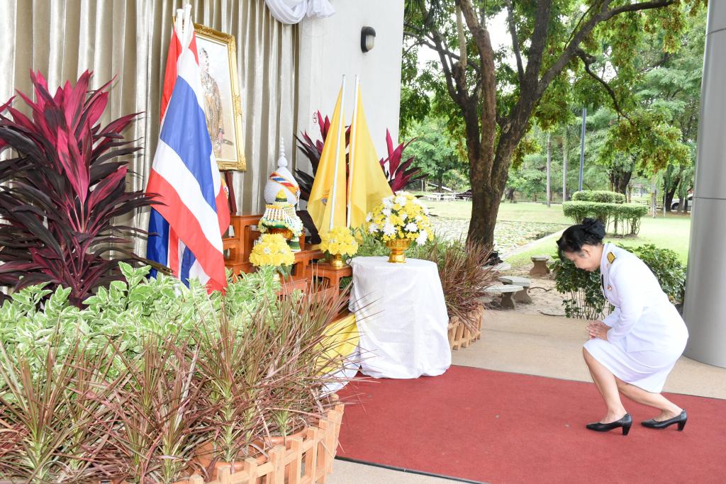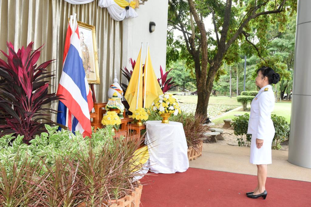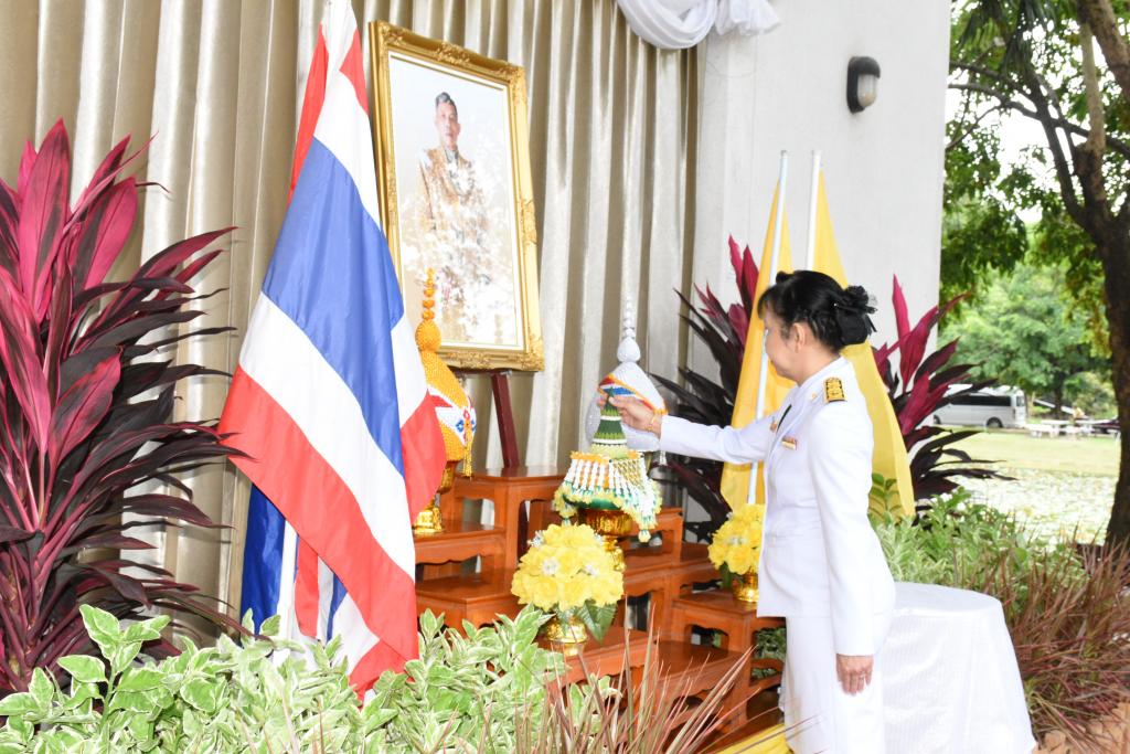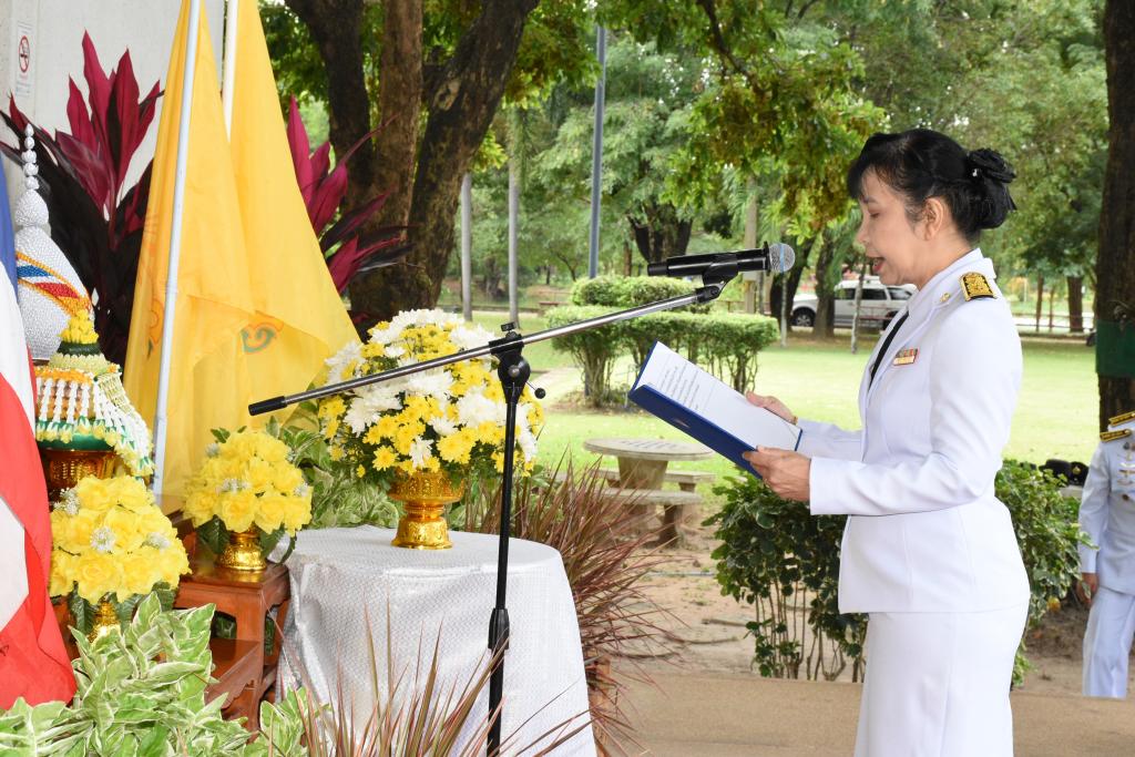 ณ มหามงคลสมัยนี้ ข้าพระพุทธเจ้า ขอพระราชทานพระบรมราชานุญาต เชิญชวน ข้าราชการ พนักงาน และบุคลากร ตั้งจิตพร้อม น้อมอธิษฐาน ขออานุภาพแห่งคุณพระศรีรัตนตรัย และอำนาจแห่งสรรพสิ่งศักดิ์สิทธิ์ในสากล โปรดดลบันดาลประทานชัยมงคลแด่ พระบาทสมเด็จพระปรเมนทรรามาธิบดี ศรีสินทรมหาวชิราลงกรณ มหิศรภูมิพลราชวรางกูร กิติสิริสมบูรณอดุลยเดช สยามินทราธิเบศรราชวโรดม บรมนาถบพิตร พระวชิรเกล้าเจ้าอยู่หัว ผู้ทรงพระคุณอันประเสริฐ ให้ทรงพระเจริญยิ่งยืนนาน โรคาพาธประลาตร้างห่างไกลมีพระพลานามัยแข็งแรงสมบูรณ์ ทรงพระเกษมสำราญ พระบรมเดชานุภาพ แผ่ไพศาล สถิตสถาพรในไอศูรย์สิริราชสมบัติ เป็นพระมิ่งขวัญร่มฉัตรปกเกล้าเหล่าพสกนิกรตลอดจิรัฐิติกาล”