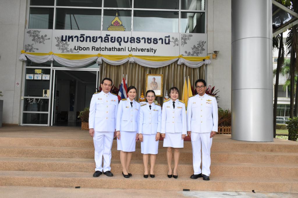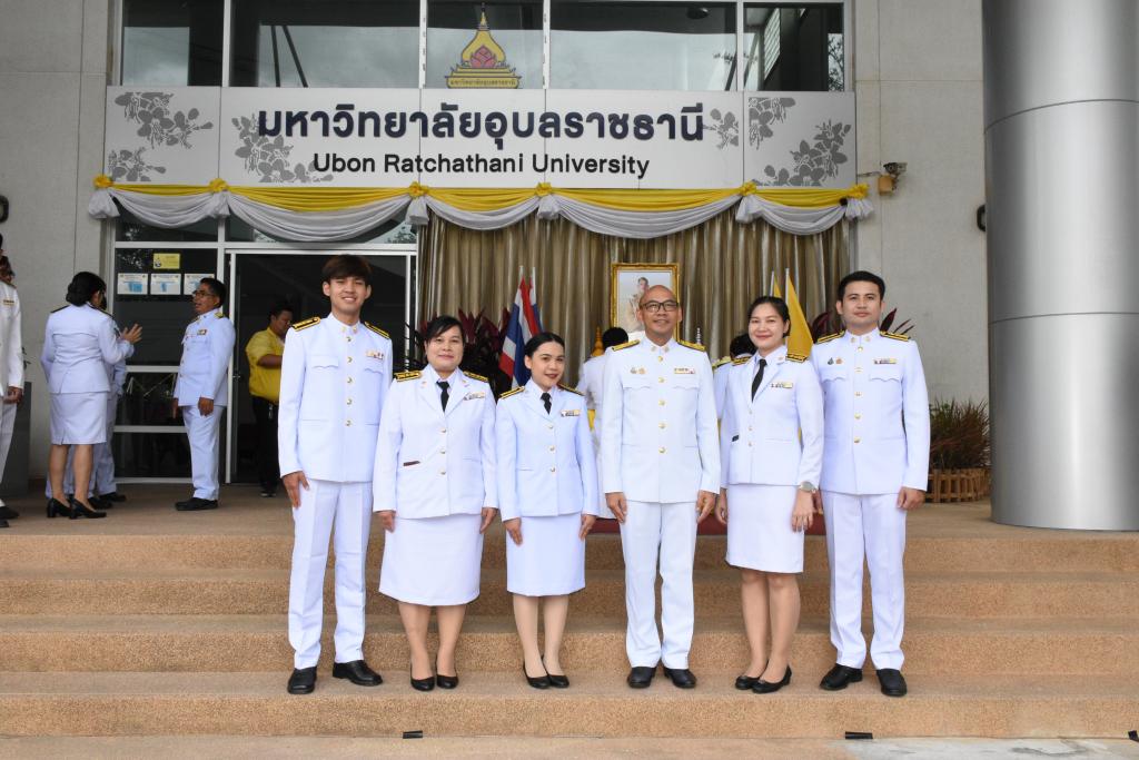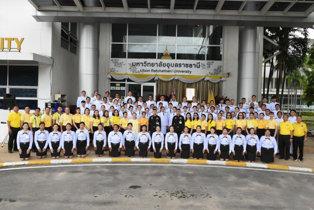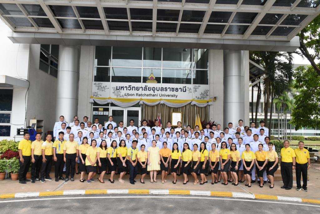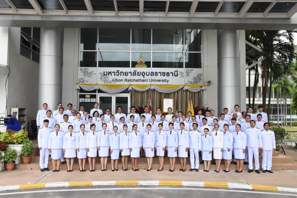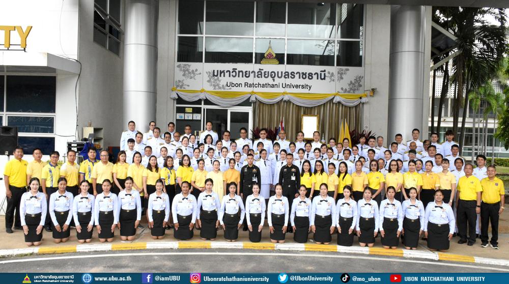 จากนั้น รองศาสตราจารย์ ดร.ชุตินันท์ ประสิทธิ์ภูริปรีชา อธิการบดีมหาวิทยาลัยอุบลราชธานี เป็นผู้นำคณะผู้บริหาร อาจารย์ และบุคลากรมหาวิทยาลัยอุบลราชธานี กล่าวคำถวายสัตย์ปฏิญาณ เพื่อเป็นข้าราชการที่ดีและพลังของแผ่นดิน สนองพระมหากรุณาธิคุณ โดยพร้อมเพรียงกัน ความว่า... “ข้าพระพุทธเจ้า ขอพระราชทานพระบรมราชานุญาต นําบรรดาข้าราชการ พนักงาน และบุคลากร กล่าวถวายสัตย์ปฏิญาณ เพื่อเป็นข้าราชการที่ดีและพลังของแผ่นดิน สนองพระมหากรุณาธิคุณ ดังต่อไปนี้ ข้าพระพุทธเจ้า.............ขอถวายสัตย์ปฏิญาณว่า จะประพฤติปฏิบัติตนเป็นข้าราชการที่ดี และพลังของแผ่นดิน มีความซื่อสัตย์สุจริต เจริญรอยตามเบื้องพระยุคลบาท มุ่งมั่นแน่วแน่แก้ไขปัญหาของประเทศชาติและประชาชน สร้างสรรค์คุณประโยชน์แก่แผ่นดิน และดำเนินชีวิตโดยยึดมั่นในหลักธรรมคำสอนแห่งศาสนา ตามแนวทางในพระบรมราโชวาทตลอดไป” ด้วยเกล้าด้วยกระหม่อม ขอเดชะ