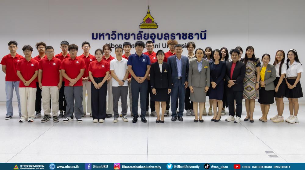 มหาวิทยาลัยอุบลราชธานี โดย สำนักงานวิเทศสัมพันธ์และการศึกษานานาชาติ และ คณะบริหารศาสตร์ ให้การต้อนรับ คณาจารย์ และนักศึกษา จากมหาวิทยาลัยเทคโนโลยีจิงชู (Jingchu University of Technology) สาธารณรัฐประชาชนจีน ในโอกาสการร่วมโครงการแลกเปลี่ยน โดยมี รศ.ดร.ชุตินันท์ ประสิทธิ์ภูริปรีชา อธิการบดี ผศ.ดร.อรนุช ปวงสุข ผู้ช่วยอธิการบดีฝ่ายวิเทศสัมพันธ์และการศึกษานานาชาติ ผศ.ดร.อุทัย อันพิมพ์ คณบดีคณะบริหารศาสตร์ นำ คณะผู้บริหาร คณาจารย์ ร่วมให้การต้อนรับ เมื่อวันที่ 23 กรกฎาคม 2568 ณ ห้องประชุมพิบูลมังสาหาร ชั้น 3 อาคารสำนักงานอธิการบดี 2 มหาวิทยาลัยอุบลราชธานี ทั้งนี้ เพื่อดำเนินการตามแผนกลยุทธ์มหาวิทยาลัย อุบลราชธานี ระยะ 5 ปี (พ.ศ. 2568-2572) ซึ่งมุ่งเน้นการสร้างพันธมิตรเชิงกลยุทธ์และพัฒนาความร่วมมือเพื่อเสริมสร้างความเข้มแข็งด้านวิชาการอย่างยั่งยืน