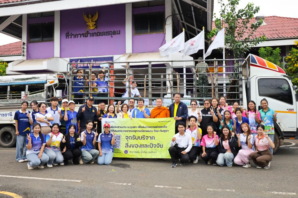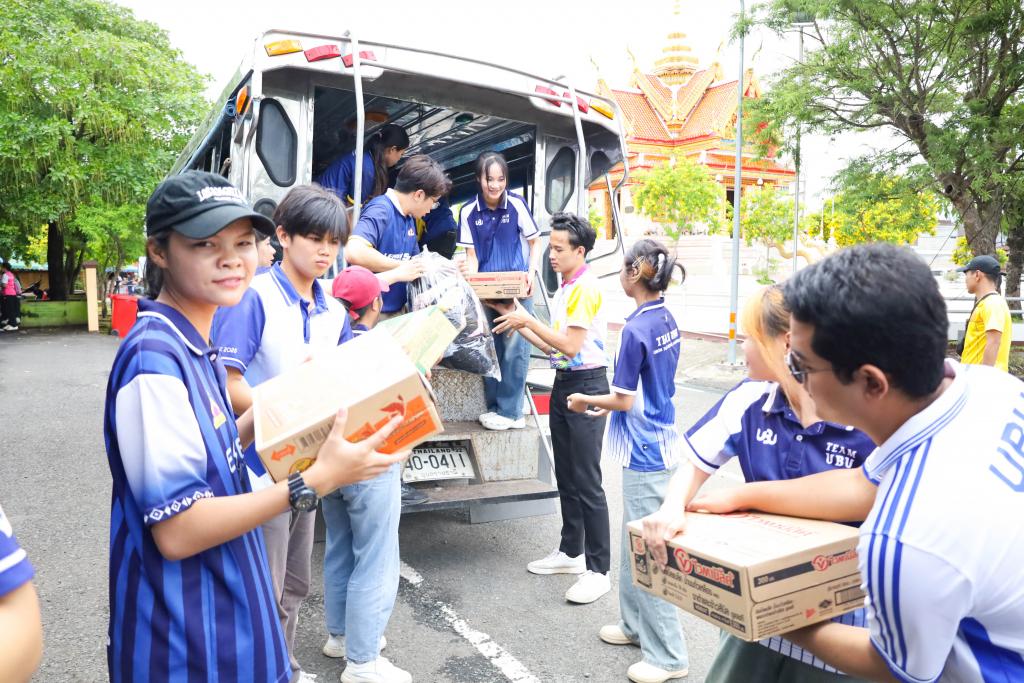 ศูนย์ประสานงาน ม.อุบลฯ เพื่อส่งต่อความช่วยเหลือผู้ได้รับผลกระทบจากเหตุการณ์ชายแดนไทย-กัมพูชา (UBU Coordination Center : UBU COC) โดย ผู้ช่วยศาสตราจารย์ ดร.ปรีชา บุญจูง รองอธิการบดีฝ่ายพัฒนานักศึกษาและศิษย์เก่าสัมพันธ์ พร้อมด้วย ศาสตราจารย์ ดร.ทวนทอง จุฑาเกตุ รองอธิการบดีฝ่ายวิจัยและนวัตกรรม ดร.อนุสรณ์ บรรเทิง ผู้ช่วยอธิการบดีฝ่ายสารสนเทศทางการศึกษาและ ผู้ช่วยศาสตราจารย์เกษร ศาสตราธรรม ผู้ช่วยอธิการบดีฝ่ายวิชาการ นำบุคลากร และนักศึกษา จำนวน 60 คน ลงพื้นที่ส่งมอบสิ่งของบริจาคเครื่องอุปโภค บริโภค เพื่อนำส่งต่อให้กับศูนย์อพยพในพื้นที่ในจุดต่างๆ โดยมี ว่าที่ร้อยตรีกรกฎ ประเสริฐวงษ์ รองผู้ว่าราชการจังหวัดอุบลราชธานี ร่วมรับมอบ ณ ศูนย์รับบริจาคอำเภอเดชอุดม ที่ว่าการอำเภอเดชอุดม จ.อุบลราชธานี