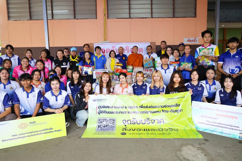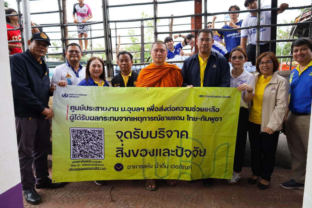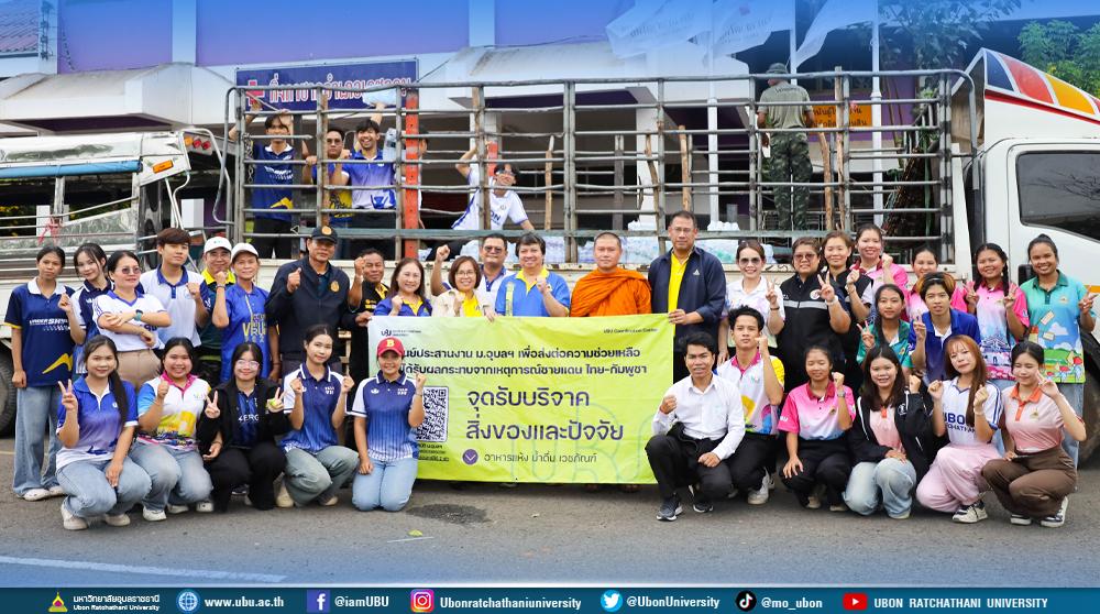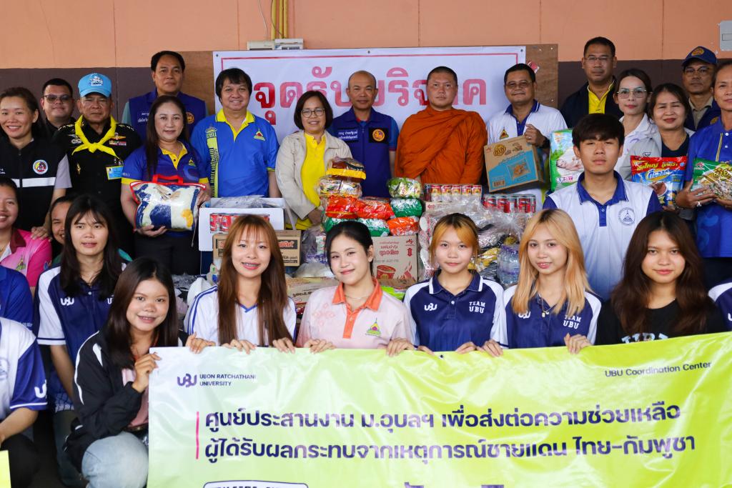 ผู้ช่วยศาสตราจารย์ ดร.ปรีชา บุญจูง รองอธิการบดีฝ่ายพัฒนานักศึกษาและศิษย์เก่าสัมพันธ์ ประธานศูนย์ประสานงานฯ กล่าวว่า มหาวิทยาลัยอุบลราชธานี ได้ดำเนินการจัดตั้ง ศูนย์ประสานงาน ม.อุบลฯ เพื่อส่งต่อความช่วยเหลือผู้ได้รับผลกระทบจากเหตุการณ์ชายแดนไทย-กัมพูชา ในการเตรียมความพร้อมให้การช่วยเหลือประชาชนในพื้นที่ ที่ได้รับผลกระทบจากเหตุการณ์ ความไม่สงบบริเวณชายแดนไทย โดยศูนย์ประสานงานฯ ได้เปิดรับบริจาคปัจจัย สิ่งของ เครื่องอุปโภคบริโภคที่จำเป็นในชีวิตประจำวัน ซึ่งครั้งนี้ได้นำน้ำดื่มจำนวน 700 แพ็ค อาหารแห้งอาหารกระป๋อง จำนวน 1,150 ชุด เครื่องดื่อม ยา/เวชภัณฑ์ ของใช้ส่วนตัว ฯลฯ นำส่งมอบ นอกจากนี้ มหาวิทยาลัยยังดำเนินการนำเงินบริจาคจัดซื้อสิ่งของที่จำเป็นเพื่อส่งมอบให้กับเจ้าหน้าที่ที่ปฏิบัติงานในพื้นที่ชายแดน และประชาชนในพื้นที่ให้ได้รับการบรรเทาความเดือดร้อนอย่างทั่วถึง