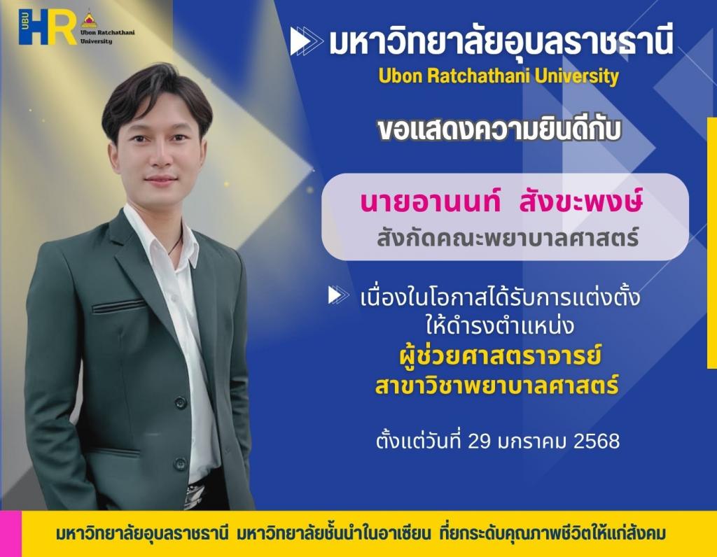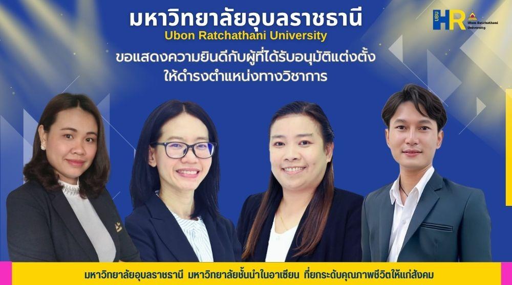สภามหาวิทยาลัยอุบลราชธานี ในการประชุมครั้งที่ 7/2568 วาระพิเศษ (ลับ) เมื่อวันที่ 26 กรกฎาคม 2568 มีมติอนุมัติบุคคลให้ดำรงตำแหน่งทางวิชาการ จำนวน 4 ราย ดังนี้