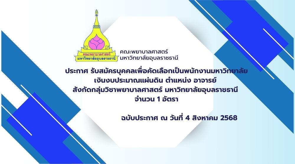 ด้วยคณะพยาบาลศาสตร์ มหาวิทยาลัยอุบลราชธานี มีความประสงค์จะรับสมัครสอบคัดเลือกบุคคลเป็นพนักงานมหาวิทยาลัย เงินงบประมาณแผ่นดิน ตำแหน่ง อาจารย์ จำนวน 1 อัตรา (เลขที่ตำแหน่ง 781)