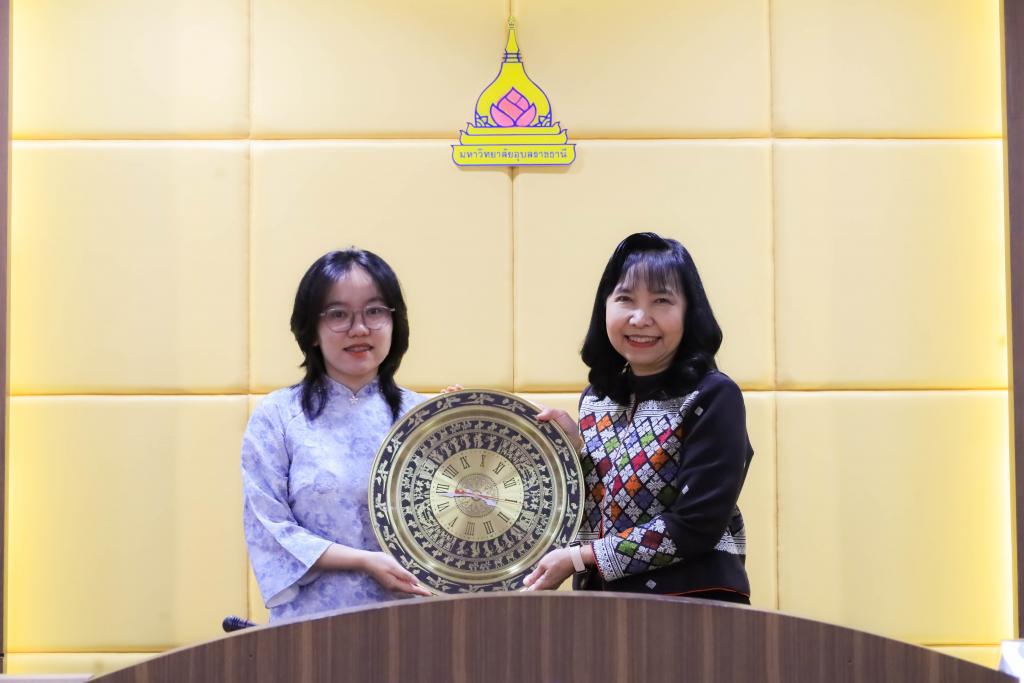 มหาวิทยาลัยอุบลราชธานี โดย สำนักงานวิเทศสัมพันธ์และการศึกษานานาชาติ จัดกิจกรรมต้อนรับนักศึกษาแลกเปลี่ยน จาก University of Foreign Languages and International Studies, Hue University (HUFLIS) สาธารณรัฐสังคมนิยมเวียดนาม ภายใต้โครงการฝึกประสบการณ์วิชาชีพด้านการใช้ภาษาอังกฤษในการสอน ตามความร่วมมือทางวิชาการร่วมกับ คณะศิลปศาสตร์ โดยมี รองศาสตราจารย์ ดร.ชุตินันท์ ประสิทธิ์ภูริปรีชา อธิการบดี เป็นประธานกล่าวต้อนรับสู่มหาวิทยาลัยอุบลราชธานี ซึ่งมี ผู้ช่วยศาสตราจารย์ ดร.อรนุช ปวงสุข ผู้ช่วยอธิการบดีฝ่ายวิเทศสัมพันธ์และการศึกษานานาชาติ พร้อมด้วย ผู้ช่วยศาสตราจารย์ ดร.เฉลิมชัย วงศ์รักษ์ รองคณบดีฝ่ายวิชาการและวิเทศสัมพันธ์ คณะศิลปศาสตร์ ร่วมให้การต้อนรับอย่างอบอุ่น ณ ห้องประชุมวารินชำราบ ชั้น 3 อาคารสำนักงานอธิการบดี 2