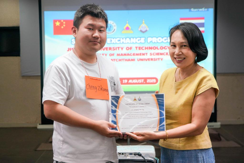 มหาวิทยาลัยอุบลราชธานี โดยคณะบริหารศาสตร์ จัดกิจกรรมอำลานักศึกษาแลกเปลี่ยนจาก มหาวิทยาลัยเทคโนโลยีจิงชู (Jingchu University of Technology: JCUT) สาธารณรัฐประชาชนจีน จำนวน 12 คน ที่เข้าร่วมโครงการระหว่างวันที่ 24 กรกฎาคม ถึงวันที่ 18 สิงหาคม 2568 โดยมี ผู้ช่วยศาสตราจารย์ ดร.นรา หัตถสิน รองคณบดีฝ่ายวิชาการ เป็นประธาน พร้อมด้วย ดร.สายรุ้ง สังวาลย์ ผู้ช่วยคณบดีฝ่ายสื่อสารองค์กรและกิจการต่างประเทศ คณาจารย์ นักศึกษาพี่เลี้ยง และนักศึกษาบัดดี้ จากสาขาการจัดการธุรกิจระหว่างประเทศ เข้าร่วมอย่างพร้อมเพรียง บรรยากาศเต็มไปด้วยความอบอุ่นและมิตรภาพ ณ โรงแรมยูเพลส มหาวิทยาลัยอุบลราชธานี เมื่อวันที่ 18 สิงหาคม 2568