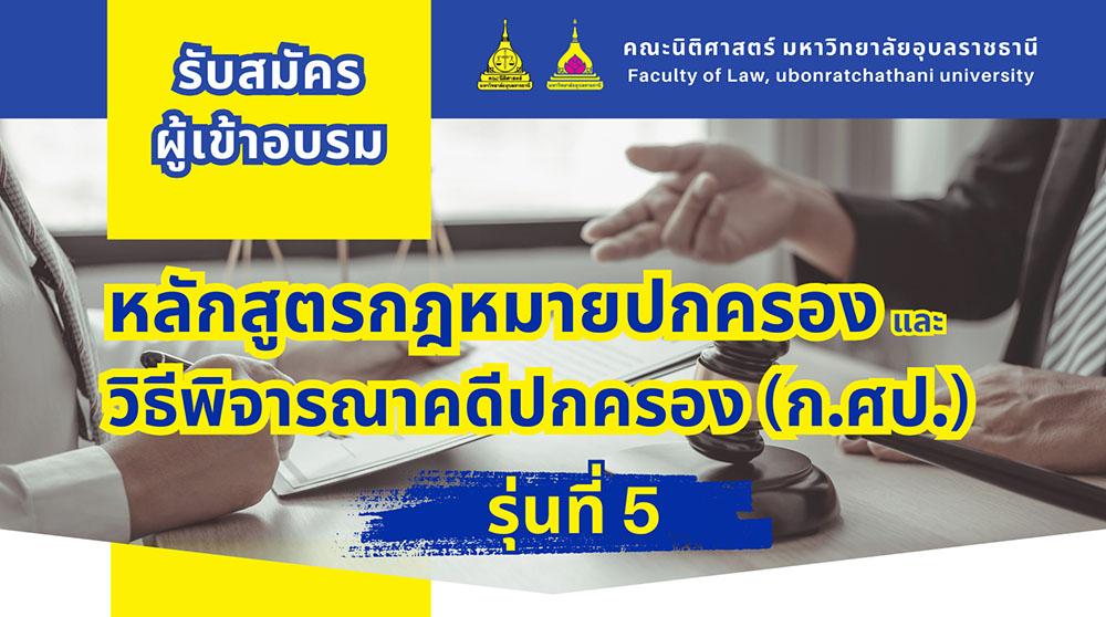 คณะนิติศาสตร์ มหาวิทยาลัยมหาวิทยาลัยอุบลราชธานี เปิดรับสมัครผู้เข้าอบรมหลักสูตร “กฎหมายปกครองและวิธีพิจารณาปกครอง (ก.ศป.) รุ่นที่ 5” ที่ได้รับการรับรองจาก ก.ศป. รับสมัครเพียง 50 ที่นั่งเท่านั้น