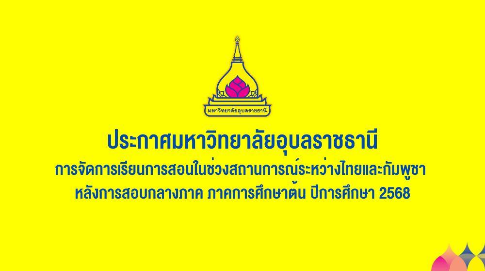 ตามที่ได้มีประกาศมหาวิทยาลัยอุบลราชธานี เรื่อง มาตรการด้านการจัดการเรียนการสอน ในช่วงสถานการณ์ ระหว่างไทยและกัมพูชา ฉบับลงวันที่ 27 กรกฎาคม 2568