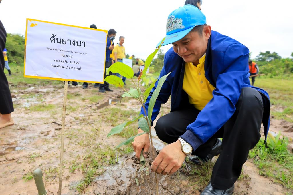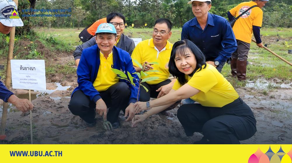 ทั้งนี้ มหาวิทยาลัยได้เตรียมต้นไม้ยืนต้นที่มีคุณค่าและเหมาะสมกับพื้นที่ได้แก่ ต้นยางนา ซึ่งเป็นต้นไม้ประจำจังหวัดอุบลราชธานี และเป็นราชินีแห่งป่า ต้นตะเคียนทองและต้นมะฮอกกานี รวมจำนวนทั้งสิ้น 1,000 ต้น บนพื้นที่ประมาณ 4 ไร่ ซึ่งไม่เพียงแต่จะเป็นการเพิ่มพื้นที่ป่าเท่านั้น แต่ยังเป็นการสร้างระบบนิเวศที่สมบูรณ์ และเป็นแหล่งเรียนรู้ด้าน สิ่งแวดล้อมให้แก่เยาวชน นักศึกษา นักวิชาการ และชุมชนรอบข้างด้วยการมีส่วนร่วมอย่างอบอุ่นนี้สะท้อนให้เห็นถึงความตั้งใจจริงของทุกฝ่ายที่จะร่วมกันขับเคลื่อนมหาวิทยาลัยอุบลราชธานีไปสู่การเป็น "Green University" ตามแผนกลยุทธ์การพัฒนาอย่างยั่งยืน