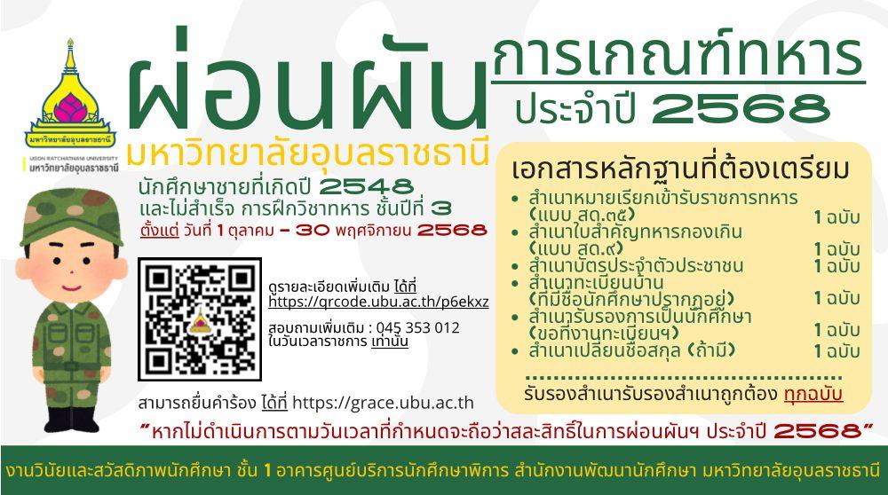 ประกาศผ่อนผันการตรวจเลือกเข้ารับราชการทหารกองประจำการ ประจำปี 2568