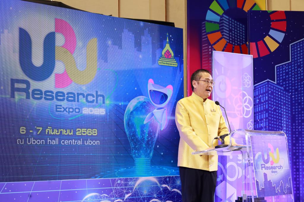 มหาวิทยาลัยอุบลราชธานี จัดงานมหกรรมวิจัยมหาวิทยาลัยอุบลราชธานี 2568 (UBU Research Expo 2025) โดยมี รองศาสตราจารย์ชุตินันท์ ประสิทธิ์ภูริปรีชา อธิการบดีมหาวิทยาลัยอุบลราชธานี กล่าวต้อนรับ ศาสตราจารย์ทวนทอง จุฑาเกตุ รองอธิการบดีฝ่ายวิจัยและนวัตกรรม กล่าวรายงานวัตถุประสงค์การจัดงาน รับเกียรติจาก ร้อยตรีสรมงคล มงคละสิริ รองผู้ว่าราชการจังหวัดอุบลราชธานี เป็นประธานในพิธีเปิด เมื่อวันที่ 6 กันยายน 2568 ณ ห้องอุบลฮอลล์ ศูนย์การค้าเซ็นทรัล อุบลราชธานี