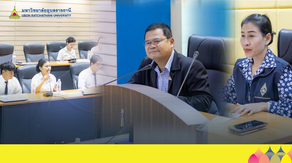 มหาวิทยาลัยอุบลราชธานี โดย ผู้ช่วยศาสตราจารย์ ดร.ปรีชา บุญจูง รองอธิการบดีฝ่ายพัฒนานักศึกษาและศิษย์เก่าสัมพันธ์ให้การต้อนรับ นางจิมาภรณ์ โพธิ รองประธานแม่บ้านมหาดไทยจังหวัดอุบลราชธานี สมาชิกชมรมแม่บ้านมหาดไทยจังหวัดอุบลราชธานี และคณะกรรมการตรวจเยี่ยมนักเรียนทุนฯ ลงพื้นที่เยี่ยมบ้านนักเรียนผู้รับทุนการศึกษาพระราชทาน ภายใต้ “มูลนิธิทุนการศึกษาพระราชทานสมเด็จพระบรมโอรสาธิราชฯ สยามกุฎราชกุมาร (ม.ท.ศ.) ประจำปีการศึกษา 2568 ในโอกาสตรวจเยี่ยมพบปะนักศึกษาทุน ของมหาวิทยาลัยอุบลราชธานี พร้อมรับฟังรายงานผลการเรียน และการใช้จ่ายในการศึกษาตลอดจนการทำกิจกรรมจิตอาสาเพื่อสังคม โดยมี คณะผู้บริหาร พร้อมบุคลากร มหาวิทยาลัยอุบราชธานี ร่วมให้การต้อนรับ ณ ห้องประชุมวารินชำราบ สำนักงานอธิการบดี 2 เมื่อวันที่ 15 กันยายน 2568