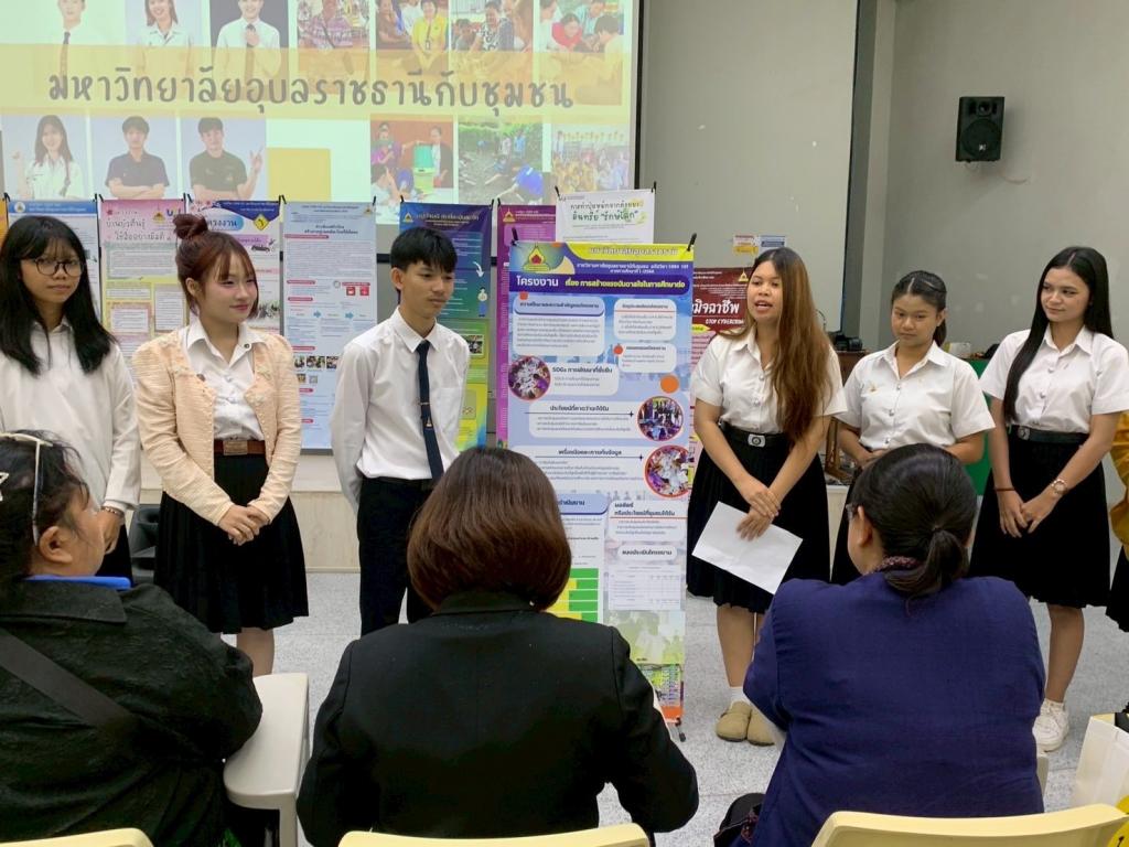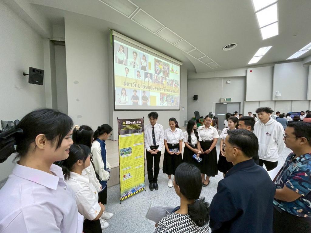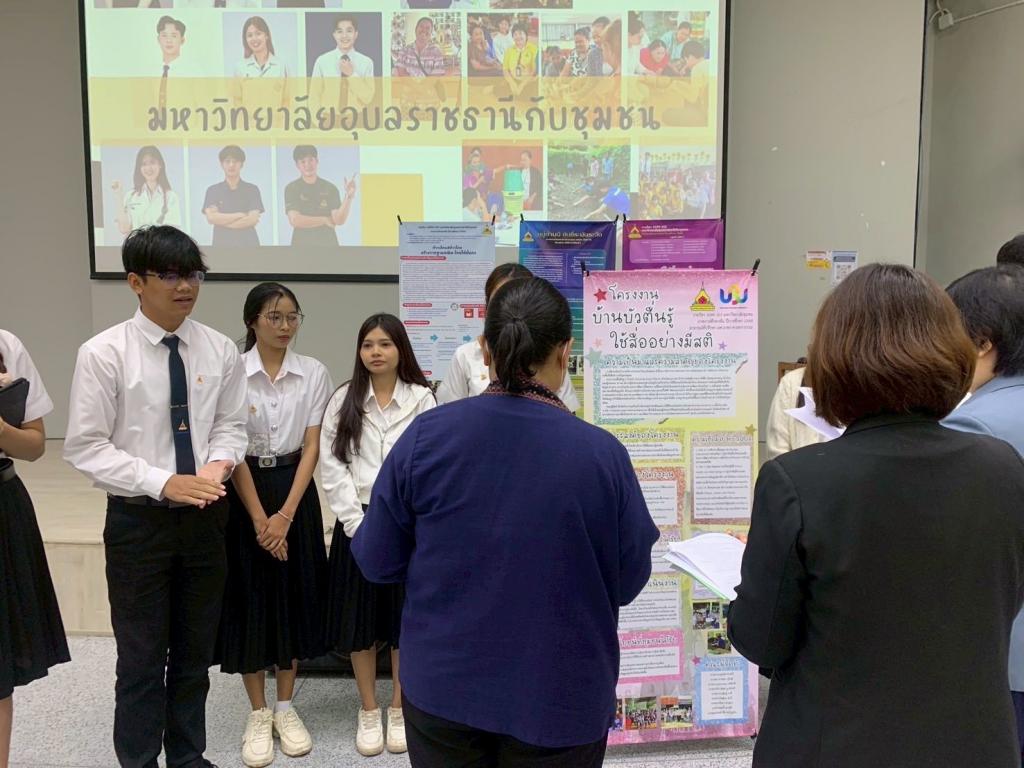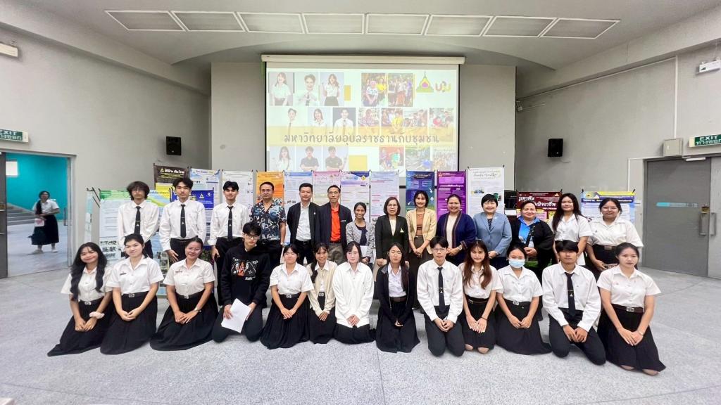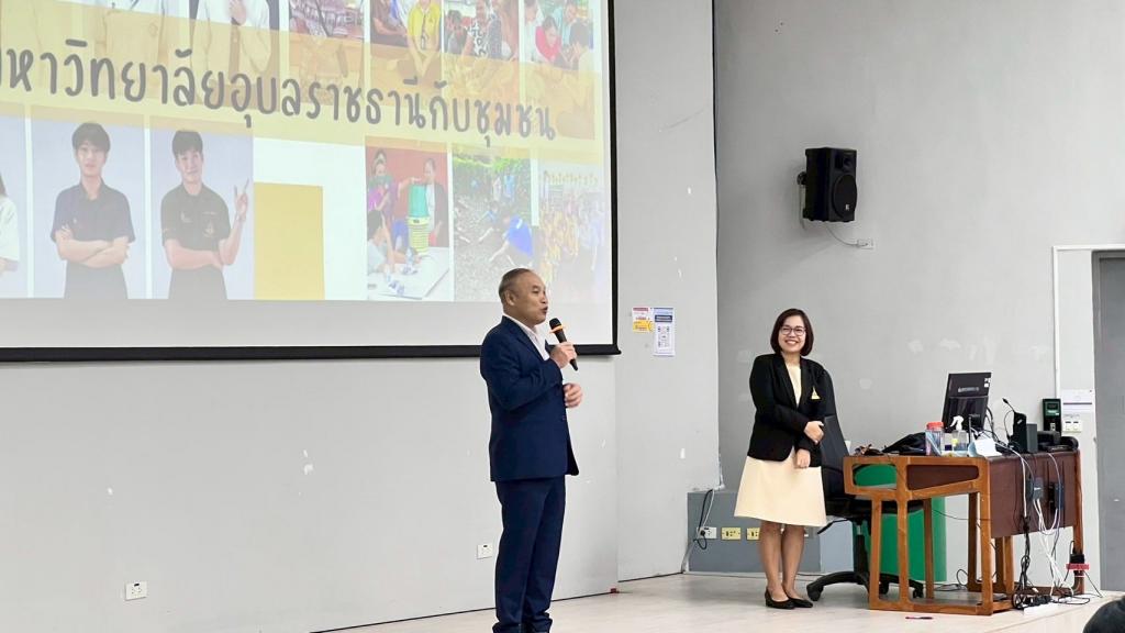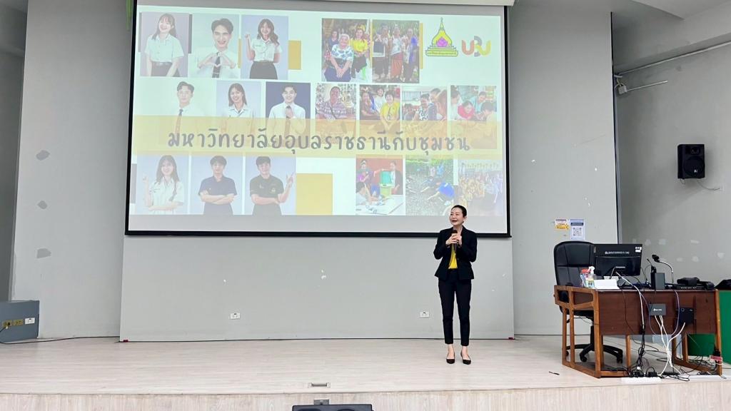 กองบริการการศึกษา มหาวิทยาลัยอุบลราชธานี จัดกิจกรรมการนำเสนอโครงงานนักศึกษาในรายวิชา 1094101 มหาวิทยาลัยอุบลราชธานีกับชุมชน ภายใต้โครงการส่งเสริมการจัดการเรียนการสอนรายวิชาศึกษาทั่วไปแบบบูรณาการ เพื่อพัฒนาศักยภาพนักศึกษาและชุมชน โดยมี พิธีเปิดกิจกรรม เมื่อวันอาทิตย์ที่ 28 กันยายน 2568 รับเกียรติจาก ผศ.ดร.จารุวรรณ ธนวิรุฬห์ รองอธิการบดีฝ่ายวิชาการ ผศ.เกษร ศาสตราธรรม ผู้ช่วยอธิการบดีฝ่ายวิชาการ ดร.อนุสรณ์ บรรเทิง ผู้ช่วยอธิการบดีฝ่ายสารสนเทศทางการศึกษา และนางวิชชุดา มงคล ผู้อำนวยการกองบริการการศึกษา รวมทั้งผู้นำชุมชน เข้าร่วมรับฟังการนำเสนอโครงงาน กิจกรรมและให้กำลังใจนักศึกษา ณ อาคารเรียนรวม 5 มหาวิทยาลัยอุบลราชธานี