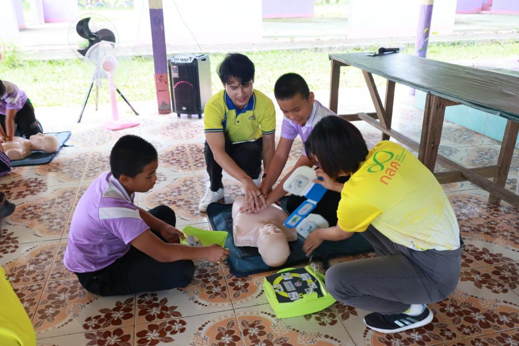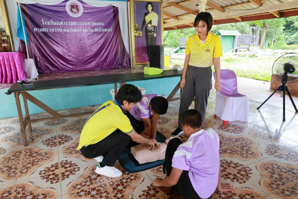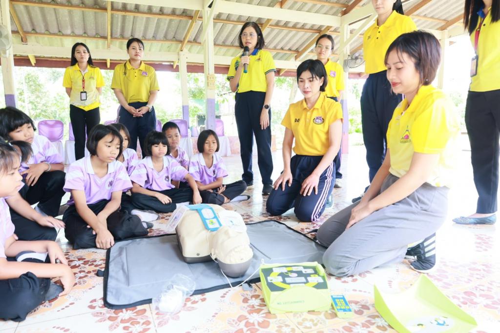 ภายในกิจกรรม จัดให้มีการให้รู้และฝึกทักษะปฏิบัติการปฐมพยาบาลเบื้องต้น การช่วยฟื้นคืนชีพ (CPR) และการใช้เครื่องกระตุกหัวใจอัตโนมัติ (AED) เพื่อเสริมศักยภาพแก่คณะครูและนักเรีนในการช่วยเหลือผู้ป่วยฉุกเฉินได้อย่างถูกวิธีและทันท่วงที นำโดยผู้ช่วยศาสตราจารย์ภูษณิศา มีนาเขตร รองคณบดีฝ่ายบริหาร คณะพยาบาลศาสตร์ มหาวิทยาลัยอุบลราชธานี พร้อมด้วยคณาจารย์และบุคลากรที่ร่วมถ่ายทอดองค์ความรู้ด้านสุขภาพ