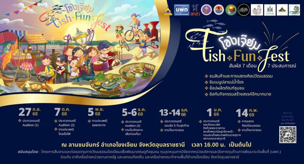 ผู้ช่วยศาสตราจารย์ ดร.นรา หัตถสิน รองคณบดีฝ่ายวิชาการ คณะบริหารศาสตร์ และผู้จัดการโครงการวิจัยโครงการสืบสานและต่อยอดทุนทางวัฒนธรรมโขงเจียมเพื่อพัฒนาเศรษฐกิจชุมชน มหาวิทยาลัยอุบลราชธานี กล่าวว่า การจัดงาน “โขงเจียม Fish-Fun-Fest” ในครั้งนี้ เป็นการร่วมแรงร่วมใจสร้างความรักสามัคคีระหว่างชุมชนกับทีมวิจัยโครงการฯ ภาครัฐและเอกชน โรงแรม สถานบันเทิง นักการเมืองเขตพื้นที่อำเภอโขงเจียม และภาคีเครือข่ายคณะกรรมการ “คน-เขียน-โขง” ที่มุ่งหวังในการสร้างกระแส “Soft Power” โขงเจียม ซึ่งเป็นเมืองแห่งแสงแรก เมืองแห่งมรดกทางวัฒนธรรมที่หลากหลาย และเมืองแห่งความสมดุลและสงบสุข หรือLand of Light, Legacy, and Living Harmonyให้เป็นที่ประจักษ์แก่สาธารณชนในวงกว้าง ร่วมกันจัดงาน “โขงเจียม Fish-Fun-Fest” ขึ้นเป็นประจำทุกเดือนเพื่อให้นักท่องเที่ยวและบุคคลทั่วไปได้สัมผัส 7 เดือน 7 ประสบการณ์ ตั้งแต่เดือนกันยายน 2568 – เดือนกุมภาพันธ์ 2569 โดยมีกิจกรรมต่าง ๆ ได้แก่ การประกวดการแข่งขันดนตรีร่วมสมัยเชิงสร้างสรรค์ชิงถ้วยพระราชทานสมเด็จพระกนิษฐาธิราชเจ้า กรมสมเด็จพระเทพรัตนราชสุดาฯ สยามบรมราชกุมารี กิจกรรมงานบุญประเพณี การจัดแสดงศิลปะและนิทรรศการเกี่ยวกับภูมิปัญญาท้องถิ่น การวิ่งมาราธอน การปั่นจักรยานเพื่อการท่องเที่ยว การแสดงทางวัฒนธรรม ชมการแสดงรำถวายพิธีบูชาพญานาค “สมมาบูชาพญานาคราช” นักเรียนโรงเรียนโขงเจียมวิทยาคม กลุ่มแม่แม่สาวน้อยสองสี จากนั้นร่วมกันจุดธูปเทียน สักการะพิธีบูชาองค์พญานาค วางเทียนหอมเพื่อประดับเรือไฟบก บุญเดือน 11 ประเพณีออกพรรษา ตามฮีต 12 คอง 14 ตลาดวัฒนธรรม อำเภอโขงเจียม และร่วมกิจกรรมพาแลงแยงโขง