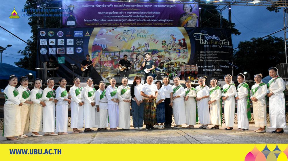มหาวิทยาลัยอุบลราชธานี โดย ทีมวิจัยโครงการสืบสานและต่อยอดทุนทางวัฒนธรรมโขงเจียมเพื่อพัฒนาเศรษฐกิจชุมชน ได้รับทุนอุดหนุนการวิจัยจากหน่วยบริหารและจัดการทุนด้านการพัฒนาระดับพื้นที่ (บพท.) ร่วมกับ ภาคีเครือข่ายมหาวิทยาลัยอุบลราชธานี เทศบาลตำบลบ้านด่านโขงเจียม หน่วยงานภาครัฐและภาคเอกชนในอำเภอโขงเจียม พร้อมด้วยภาคีเครือข่ายคณะกรรมการ “คน-เขียน-โขง” จัดงาน “โขงเจียม Fish-Fun-Fest” และการประกวดแข่งขันดนตรีร่วมสมัยเชิงสร้างสรรค์ ชิงถ้วยพระราชทานสมเด็จพระกนิษฐาธิราชเจ้า กรมสมเด็จพระเทพรัตนราชสุดา ฯ สยามบรมราชกุมารี รอบคัดเลือก ครั้งที่ 2 นำทีมโดยนายอานนท์ หนุนชู นายอำเภอโขงเจียม นายก้องสกล แก้วกัญญา นายกเทศมนตรีตำบลบ้านด่านโขงเจียม ผู้ช่วยศาสตราจารย์ ดร.นรา หัตถสิน รองคณบดีฝ่ายวิชาการ คณะบริหารศาสตร์ และผู้จัดการโครงการฯ พร้อมทีมวิจัยโครงการสืบสานและต่อยอดทุนทางวัฒนธรรมโขงเจียมเพื่อพัฒนาเศรษฐกิจชุมชน มหาวิทยาลัยอุบลราชธานี ภาคีเครือข่ายมหาวิทยาลัยอุบลราชธานี เทศบาลตำบลบ้านด่านโขงเจียม หน่วยงานภาครัฐและภาคเอกชนในอำเภอโขงเจียม และภาคีเครือข่ายคณะกรรมการ “คน-เขียน-โขง” จัดงาน “โขงเจียม Fish-Fun-Fest” และการประกวดแข่งขันดนตรีร่วมสมัยเชิงสร้างสรรค์ ชิงถ้วยพระราชทานสมเด็จพระกนิษฐาธิราชเจ้า กรมสมเด็จพระเทพรัตนราชสุดา ฯ สยามบรมราชกุมารี รอบคัดเลือก ครั้งที่ 2 เพื่อสร้างการตระหนักรู้ถึงคุณค่าของทุนทางวัฒนธรรมและสำนึกรักท้องถิ่นผ่านการพัฒนาการท่องเที่ยวเชิงกิจกรรมโดยมีตลาดวัฒนธรรมเป็นฐาน อันจะนำมาซึ่งการสร้างความรู้สึกร่วมและความภาคภูมิใจในรากเหง้าทางวัฒนธรรมเชิงพื้นที่ ตลอดจนการส่งเสริมให้ประชาชนทุกเพศวัยได้ร่วมสืบสานวัฒนธรรมท้องถิ่นอีสานอันถือเป็นคุณค่าแห่งมรดกทางวัฒนธรรมที่จะช่วยผลักดันและขับเคลื่อนเศรษฐกิจเชิงสร้างสรรค์ผ่านการสร้างสรรค์เสียงดนตรีด้วยเครื่องดนตรีอีสานผสานกับเครื่องดนตรีสมัยใหม่ให้มีความร่วมสมัยและสามารถเข้าถึงคนรุ่นใหม่ได้มากขึ้น และเพื่อเป็นการยกระดับพันธกิจที่ 4 ด้านการทำนุศิลปวัฒนธรรมของมหาวิทยาลัยอุบลราชธานีที่มุ่งเน้นส่งเสริมวัฒนธรรมและภูมิปัญญาอีสานใต้อย่างสร้างสรรค์เพื่อสร้างมูลค่าเพิ่มทางเศรษฐกิจ ผ่านการนำเสนอตลาดวัฒนธรรมที่มีองค์ประกอบทั้งการแสดงทางวัฒนธรรมและการจำหน่ายผลิตภัณฑ์ทางวัฒนธรรมของช่างฝีมือท้องถิ่นและผู้ประกอบการวัฒนธรรมในอำเภอโขงเจียม ซึ่งได้รับการยกระดับศักยภาพจากทีมนักวิจัยของมหาวิทยาลัยอุบลราชธานี เมื่อวั