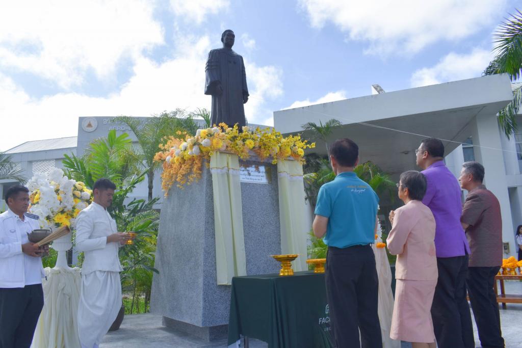 คณะเกษตรศาสตร์ มหาวิทยาลัยอุบลราชธานี ร่วมกับ สมาคมศิษย์เก่าคณะเกษตรศาสตร์ จัดพิธีบวงสรวงและเปิดอนุสรณ์สถาน รองศาสตราจารย์ ดร.วรพงษ์ สุริยภัทร คณบดีผู้ก่อตั้งคณะเกษตรศาสตร์ มหาวิทยาลัยอุบลราชธานี เพื่อรำลึกถึงคุณูปการของผู้วางรากฐานและอุทิศตนเพื่อการศึกษาและการพัฒนาเกษตรกรรมไทย โดยมี ศาสตราจารย์ ดร.ทวนทอง จุฑาเกตุ รองอธิการบดีฝ่ายวิจัยและนวัตกรรม เป็นประธาน และ ดร.นรินทร บุญพราหมณ์ คณบดีคณะเกษตรศาสตร์ กล่าวรายงาน โอกาสนี้ รองศาสตราจารย์ ดร.พรพิมล สุริยภัทร ภรรยาคณบดีผู้ก่อตั้ง และ นายประสิทธิ์ ทาลา นายกสมาคมศิษย์เก่าคณะเกษตรศาสตร์ ร่วมเปิดแพรคลุมป้ายอนุสรณ์สถาน ท่ามกลางบรรยากาศที่อบอวลด้วยความระลึกถึงและความภาคภูมิใจ โดยมีคณะผู้บริหาร คณาจารย์ บุคลากร ศิษย์เก่า และนักศึกษาร่วมงานอย่างพร้อมเพรียง ณ ลานหน้าอาคารปฏิบัติการเทคโนโลยีการเกษตร เมื่อวันที่ 11 ตุลาคม 2568 ที่ผ่านมา