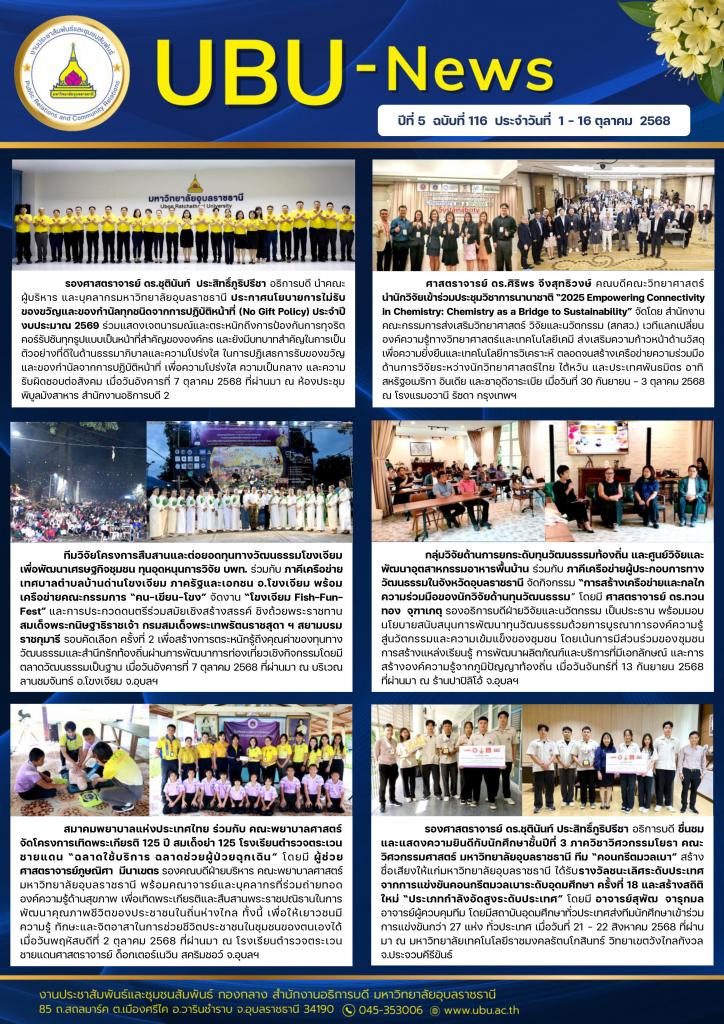 UBU NEWS ปีที่ 5 ฉบับที่ 116 ประจำวันที่ 1 - 16 ตุลาคม 2568