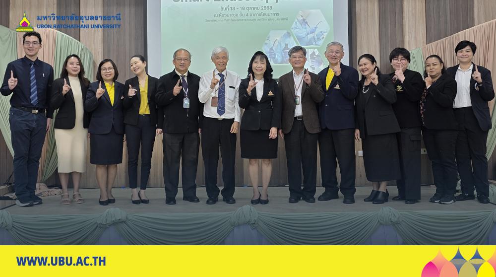 โรงพยาบาลมหาวิทยาลัยอุบลราชธานี จัดการประชุมวิชาการพยาบาลส่องกล้องทางเดินอาหาร (Smart Endoscopy Nurse) ครั้งที่ 1 เพื่อเปิดเวทีสร้างเครือข่ายวิชาการ แลกเปลี่ยนองค์ความรู้และประสบการณ์ พร้อมยกระดับศักยภาพบุคลากรด้านงานวิจัยและนวัตกรรมด้านการส่องกล้องทางเดินอาหารให้ก้าวสู่มาตรฐานระดับนานาชาติ โดยมี รองศาสตราจารย์ ดร.ชุตินันท์ ประสิทธิ์ภูริปรีชา อธิการบดีมหาวิทยาลัยอุบลราชธานี เป็นประธานเปิดโครงการ และ ศาสตราจารย์ นพ.สงวนสิน รัตนเลิศ คณบดีวิทยาลัยแพทยศาสตร์และการสาธารณสุข กล่าวรายงาน ซึ่งมีพยาบาลและผู้ปฏิบัติงานที่เกี่ยวข้องกับการส่องกล้องระบบทางเดินอาหารจากหน่วยงานภาครัฐและเอกชนกว่า 200 คน เข้าร่วมประชุม ณ ห้องประชุม NTC 410-411 อาคารโภชนาการ วิทยาลัยแพทยศาสตร์และการสาธารณสุข มหาวิทยาลัยอุบลราชธานี เมื่อวันที่ 18–19 ตุลาคม 2568 ที่ผ่านมา