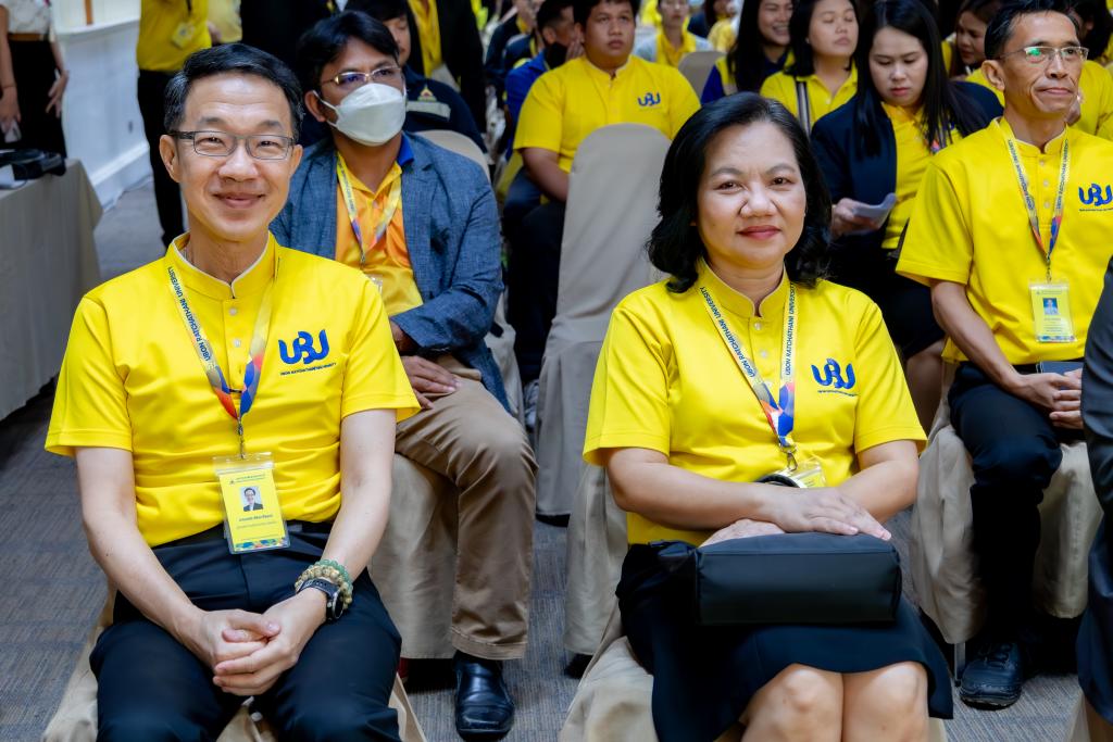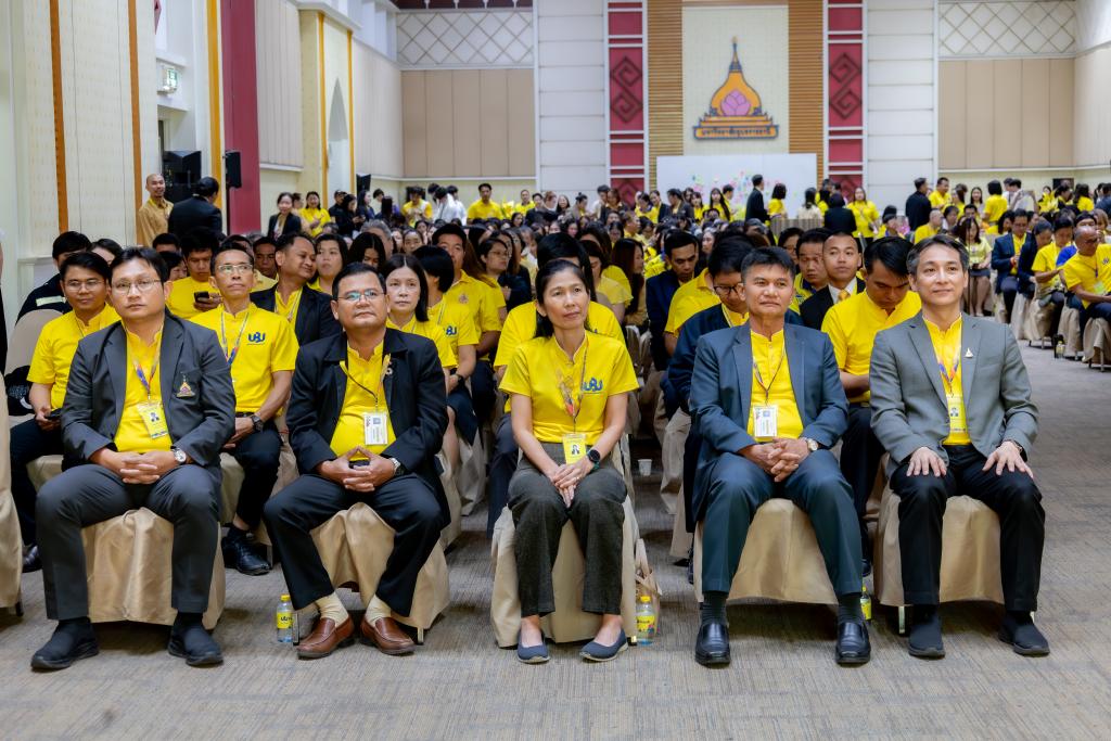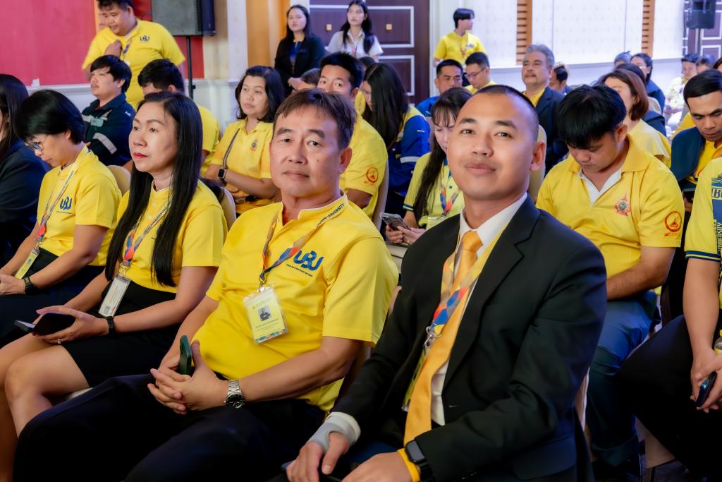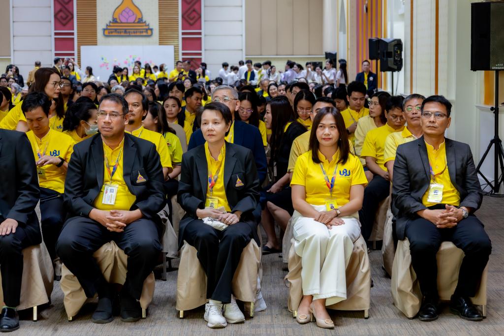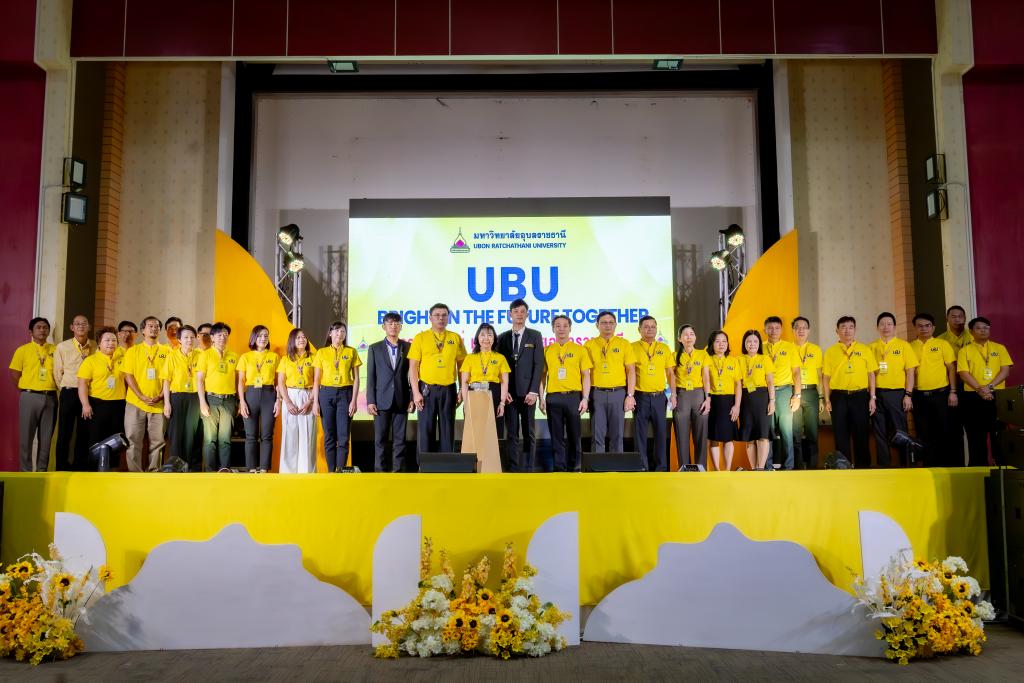 โอกาสอันสำคัญนี้ รองศาสตราจารย์ ดร.ชุตินันท์ ประสิทธิ์ภูริปรีชา อธิการบดี ได้กล่าวปาฐกถาพิเศษ “President’s Keynote: UBU Vision Forward” นำเสนอวิสัยทัศน์และแนวทางขับเคลื่อนมหาวิทยาลัยในยุคใหม่ ทิศทางสำคัญในการพัฒนามหาวิทยาลัย ทั้งการจัดตั้งคณะและหลักสูตรใหม่ให้สอดคล้องกับความต้องการของสังคมในอนาคต การปรับผังแม่บทมหาวิทยาลัยเพื่อรองรับการขยายตัวทางกายภาพและการบริหารจัดการพื้นที่อย่างมีประสิทธิภาพ การพัฒนานวัตกรรมการเรียนรู้ให้ทันต่อการเปลี่ยนแปลงของเทคโนโลยี และการสร้างระบบนิเวศเศรษฐกิจฐานความรู้ โดยเฉพาะการจัดตั้ง หน่วยวิสาหกิจของมหาวิทยาลัย และบริษัท UBU Holding Company เพื่อเพิ่มขีดความสามารถในการแข่งขันขององค์กร สร้างความเข้มแข็งทางเศรษฐกิจ และวางรากฐานสู่ความมั่นคงทางการเงินในระยะยาวของมหาวิทยาลัยอุบลราชธานี อีกด้วย