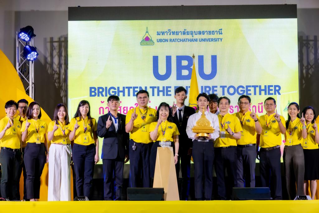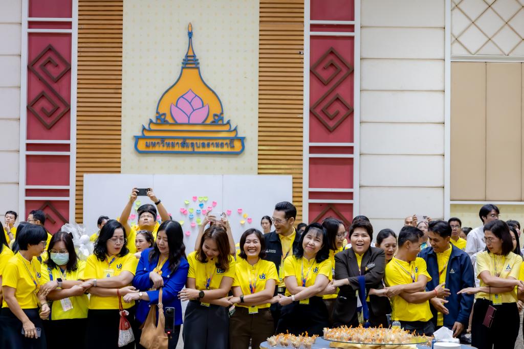 นอกจากนี้ ยังมีการนำเสนอวิดีทัศน์ “Voices of the Future” ถ่ายทอดมุมมองจากนักศึกษาและบุคลากร สะท้อนความร่วมแรงร่วมใจในการร่วมสร้างอนาคตของมหาวิทยาลัย ก่อนเข้าสู่ช่วงสำคัญของงาน โดยอธิการบดีนำคณะผู้บริหารร่วมกัน “Kick Off” สู่การเป็นมหาวิทยาลัยในกำกับของรัฐอย่างเป็นทางการ พร้อมการแสดงพิเศษจากผู้บริหาร คณาจารย์ บุคลากร และนักศึกษา ในบรรยากาศแห่งความภาคภูมิใจ อบอุ่นใจ เสริมสร้างความรักและความสามัคคี รวมกันเป็นหนึ่งสะท้อนถึง “พลังแห่งการร่วมสร้างอนาคต” ภายใต้ค่านิยม UBU – ทำเพื่อมหาวิทยาลัยร่วมกัน เพื่อก้าวสู่ยุคใหม่ของมหาวิทยาลัยอุบลราชธานี อย่างมั่นคงและยั่งยืน
