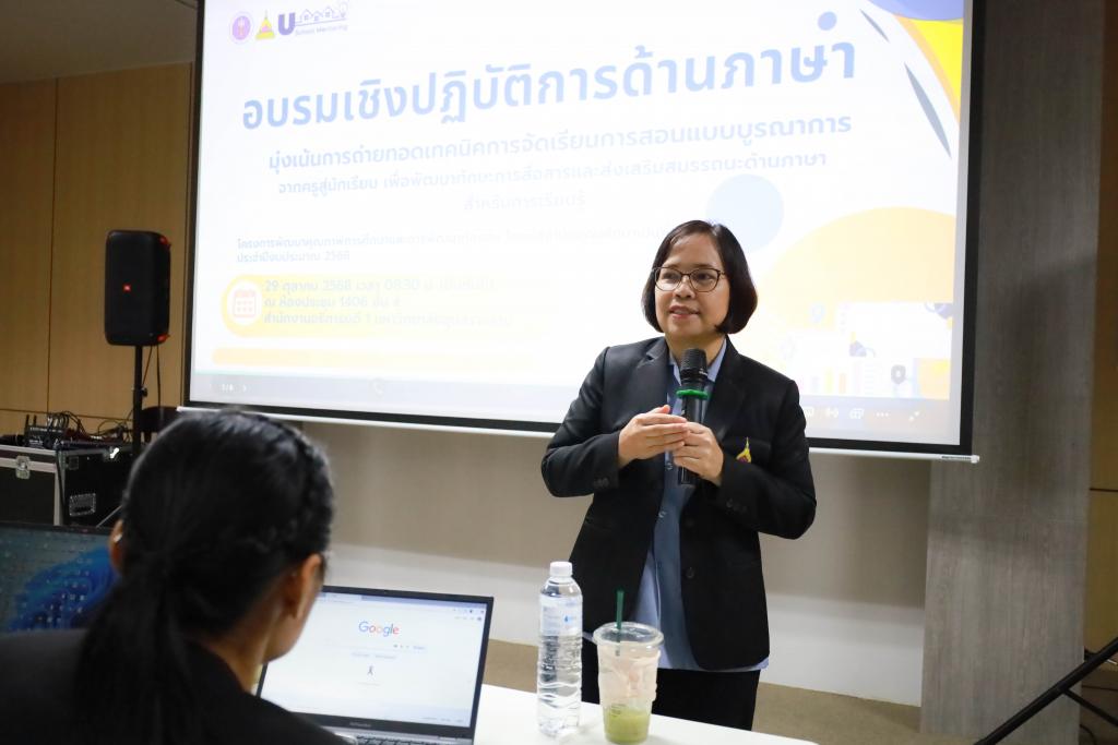 มหาวิทยาลัยอุบลราชธานี โดยกองบริการการศึกษา จัดการอบรมเชิงปฏิบัติการด้านภาษา มุ่งเน้นการถ่ายทอดเทคนิคการจัดการเรียนการสอนแบบบูรณาการจากครูสู่นักเรียน เพื่อพัฒนาทักษะการสื่อสารและส่งเสริมสมรรถนะด้านภาษาสำหรับการ เรียนรู้ ภายใต้โครงการภายพัฒนาคุณภาพการศึกษาและการพัฒนาท้องถิ่น โดยมีสถาบันอุดมศึกษาเป็นพี่เลี้ยง ประจำปีงบประมาณ 2568 ซึ่งมี ผู้ช่วยศาสตราจารย์เกษร ศาสตราธรรม ผู้ช่วยอธิการบดีฝ่ายวิชาการ เป็นประธานเปิดการอบรม ซึ่งมีผู้บริหารสถานศึกษา ครู และบุคลากรทางการศึกษา จำนวน 60 คน จากโรงเรียนเครือข่ายในพื้นที่จังหวัดอุบลราชธานี ศรีสะเกษ อำนาจเจริญ และยโสธร จำนวน 33 แห่ง เข้าร่วมอบรม ณ ห้องประชุม 1406 ชั้น 4 สำนักงานอธิการบดี 1 วันที่ 29 ตุลาคม 2568