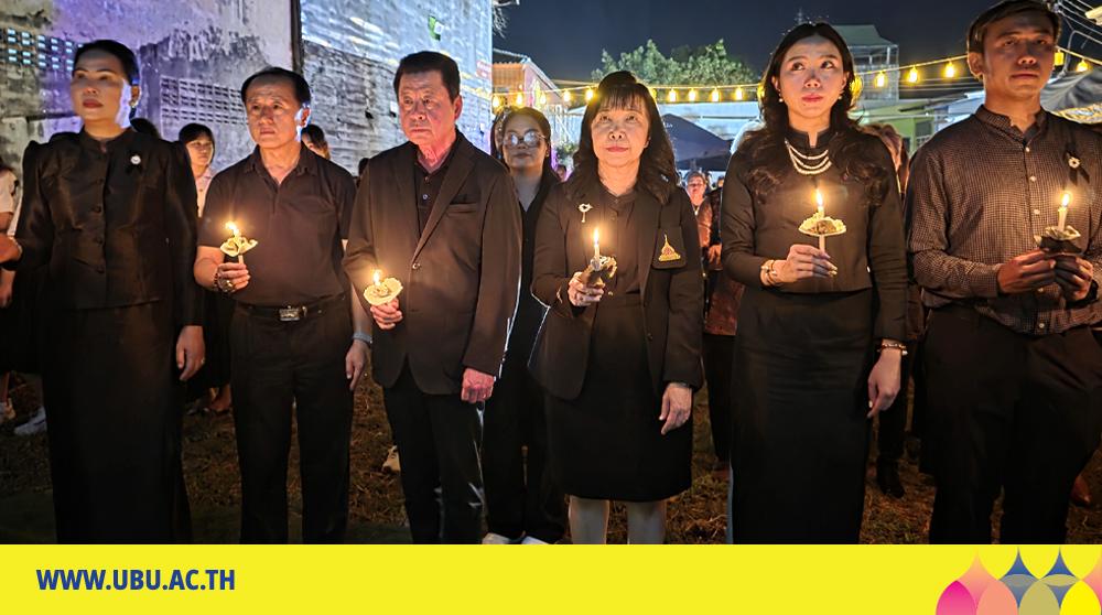 มหาวิทยาลัยอุบลราชธานี ร่วมกับเทศบาลเมืองวารินชำราบ จัดงาน “วารินศิลป์ น้อมถวายอาลัย” เพื่อถวายความอาลัยและน้อมรำลึกในพระมหากรุณาธิคุณ สมเด็จพระนางเจ้าสิริกิติ์ พระบรมราชินีนาถ พระบรมราชชนนีพันปีหลวง อันทรงเป็นที่รักยิ่งของปวงชนชาวไทย โดยมีนายจีระชัย ไกรกังวาร นายกเทศมนตรีเมืองวารินชำราบ เป็นประธานในพิธีนำกล่าวถวายความอาลัย พร้อมด้วย รองศาสตราจารย์ ดร.ชุตินันท์ ประสิทธิ์ภูริปรีชา อธิการบดี มหาวิทยาลัยอุบลราชธานี หัวหน้าส่วนราชการ คณาจารย์ บุคลากร นักศึกษา และประชาชนชาวจังหวัดอุบลราชธานี ร่วมพิธีจุดเทียนและยืนสงบนิ่ง แสดงออกถึงความจงรักภักดีและความอาลัยอย่างสุดซึ้ง ณ ถนนทหาร อำเภอวารินชำราบ จังหวัดอุบลราชธานี เมื่อวันที่ 31 ตุลาคม 2568