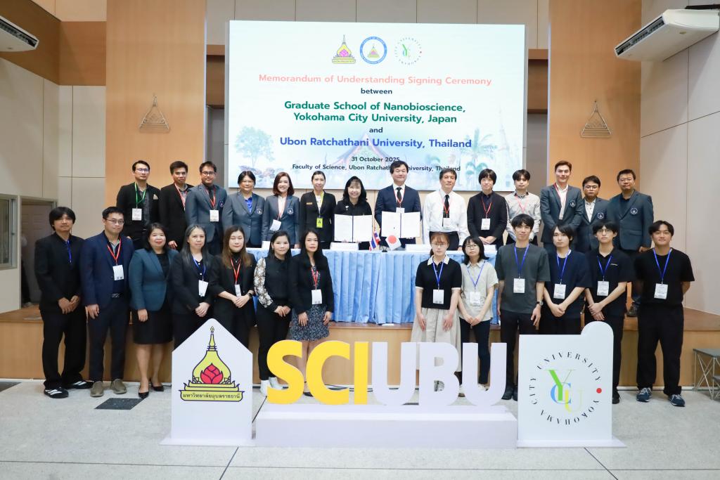มหาวิทยาลัยอุบลราชธานี โดย คณะวิทยาศาสตร์ ร่วมกับ Yokohama City University (YCU) ประเทศญี่ปุ่น จัดประชุมวิชาการนานาชาติ Thailand–Japan Mini-Symposium 2025 ภายใต้หัวข้อ “Nano Frontiers for Net-Zero Energy and Intelligent Sensing: Innovation in Materials Science and Sensor Technology for Sustainable Quality of Life” โดยมี รองศาสตราจารย์ ดร.ชุตินันท์ ประสิทธิภูริปรีชา อธิการบดี มหาวิทยาลัยอุบลราชธานี เป็นประธานพิธีเปิด และ ศาสตราจารย์ ดร.ศิริพร จึงสุทธิวงษ์ คณบดีคณะวิทยาศาสตร์ กล่าวรายงาน และ Prof. Dr.Masanori Tachikawa จาก Yokohama City University ร่วมแสดงเจตนารมณ์ความร่วมมือระหว่างสองสถาบัน ระหว่างวันที่ 31 ตุลาคม – 1 พฤศจิกายน 2568 ณ ห้องประชุมมณีเทวา คณะวิทยาศาสตร์ มหาวิทยาลัยอุบลราชธานี
