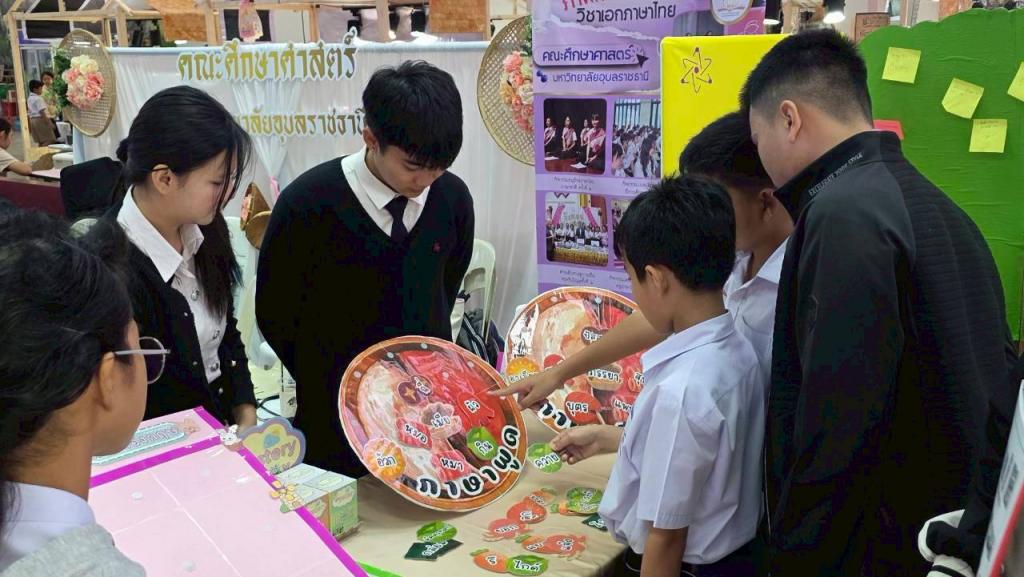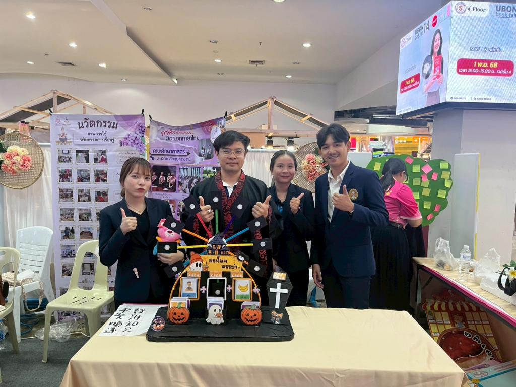 ภายในงาน งานสัปดาห์หนังสือและการเรียนรู้อุบลราชธานี ครั้งที่ 14มหาวิทยาลัยอุบลราชธานี ร่วมมือสร้างเครือข่ายกับองค์กรภาครัฐและเอกชน นำผลงานสื่อการเรียนรู้และนวัตกรรมพัฒนาทักษะเด็ก ที่สร้างสรรค์ โดยนักศึกษาได้จัดบูธนิทรรศการนำเสนอผลงานสื่อการเรียนรู้เชิงนวัตกรรมของนักศึกษาครูยุคใหม่ พร้อมทั้งแนะนำหลักสูตรการเรียนการสอนของมหาวิทยาลัย เพื่อเปิดโอกาสทางการศึกษาแก่ผู้สนใจ นอกจากนี้ ยังจัดกิจกรรมการแข่งขัน “สวดโอ้เอ้วิหารราย” ระดับอุดมศึกษา ชิงถ้วยรางวัลเกียรติยศจากรัฐมนตรีว่าการกระทรวงศึกษาธิการ ซึ่งเป็นครั้งแรกของคณะศึกษาศาสตร์ในการจัดการแข่งขัน ซึ่งได้รับความสนใจจากนักศึกษา สถาบันอุดมศึกษา จากทั่วประเทศ และนักเรียน นักศึกษา ประชาชนทั่วไปเข้าร่วมชมกิจกรรมจำนวนมาก