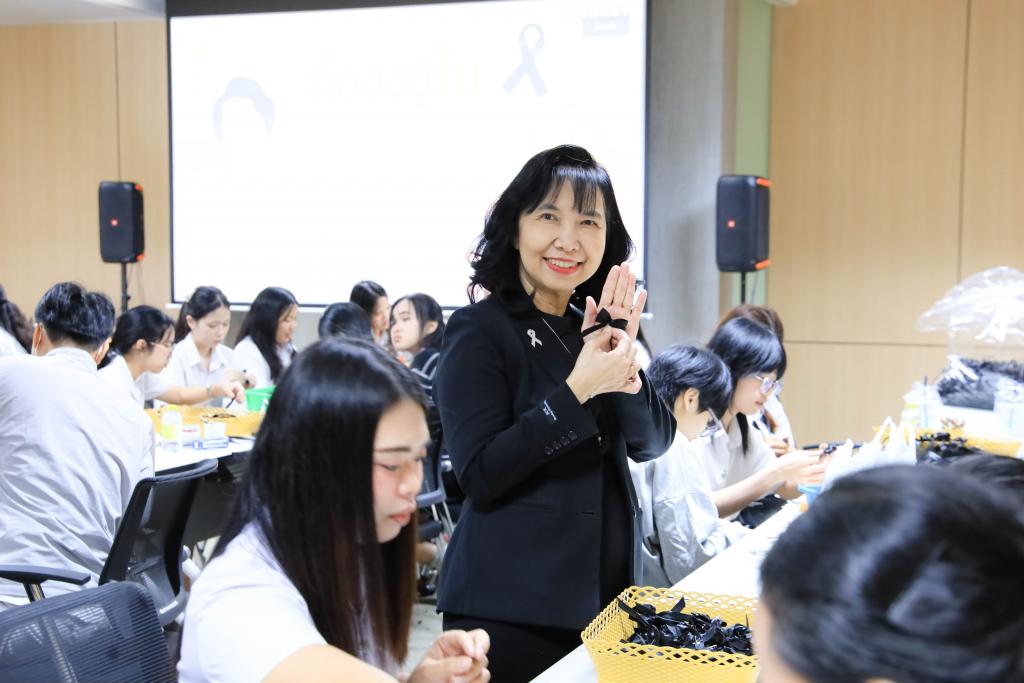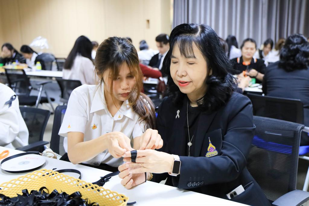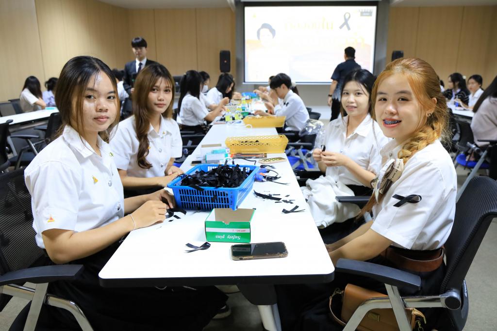 ผู้ช่วยศาสตราจารย์ ดร.ปรีชา บุญจูง รองอธิการบดีฝ่ายพัฒนานักศึกษาและศิษย์เก่าสัมพันธ์ กล่าว่า โครงการจัดทำริบบิ้นถวายความอาลัย เป็นกิจกรรมจิตอาสา ที่มหาวิทยาลัยส่งเสริมให้นักศึกษาได้แสดงออกถึงความจงรักภักดี ความกตัญญูกตเวที และถวายความอาลัย น้อมรำลึกในพระมหากรุณาธิคุณอย่างหาที่สุดมิได้ ของสมเด็จพระนางเจ้าสิริกิติ์ พระบรมราชินีนาถ พระบรมราชชนนีพันปีหลวง ภายหลังจากสำนักพระราชวังประกาศการเสด็จสวรรคต เมื่อวันที่ 24 ตุลาคม 2568 ซึ่งนับเป็นช่วงเวลาที่คนไทยร่วมกันแสดงความอาลัยอย่างพร้อมเพรียง