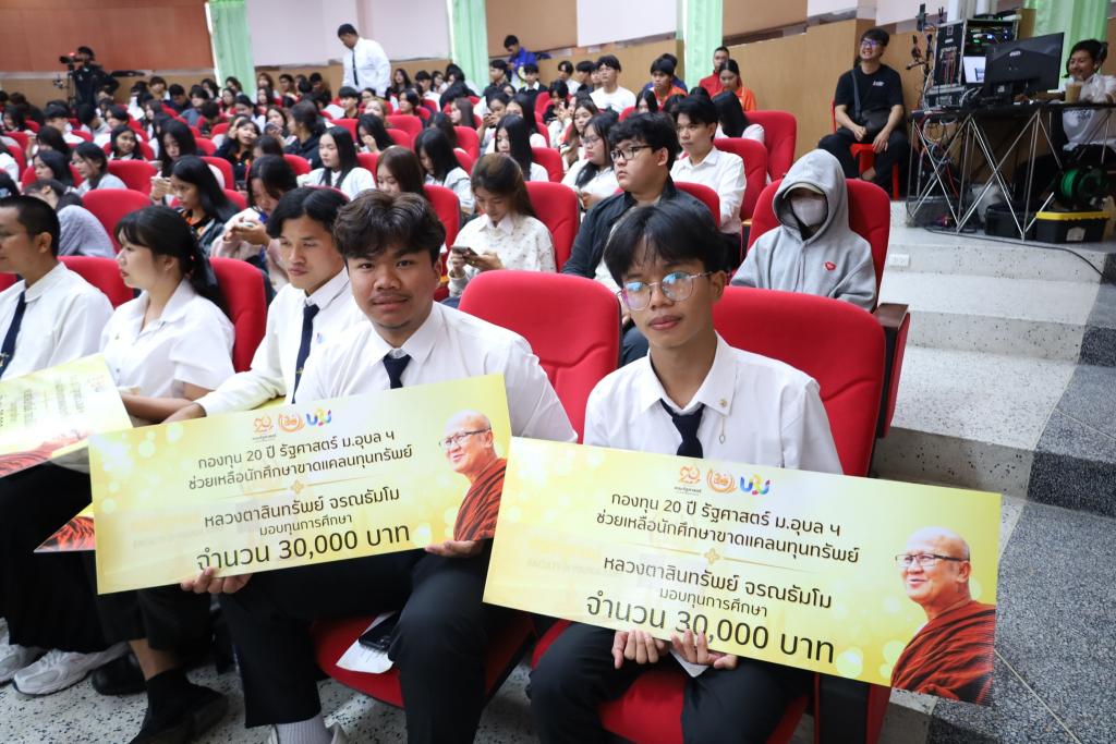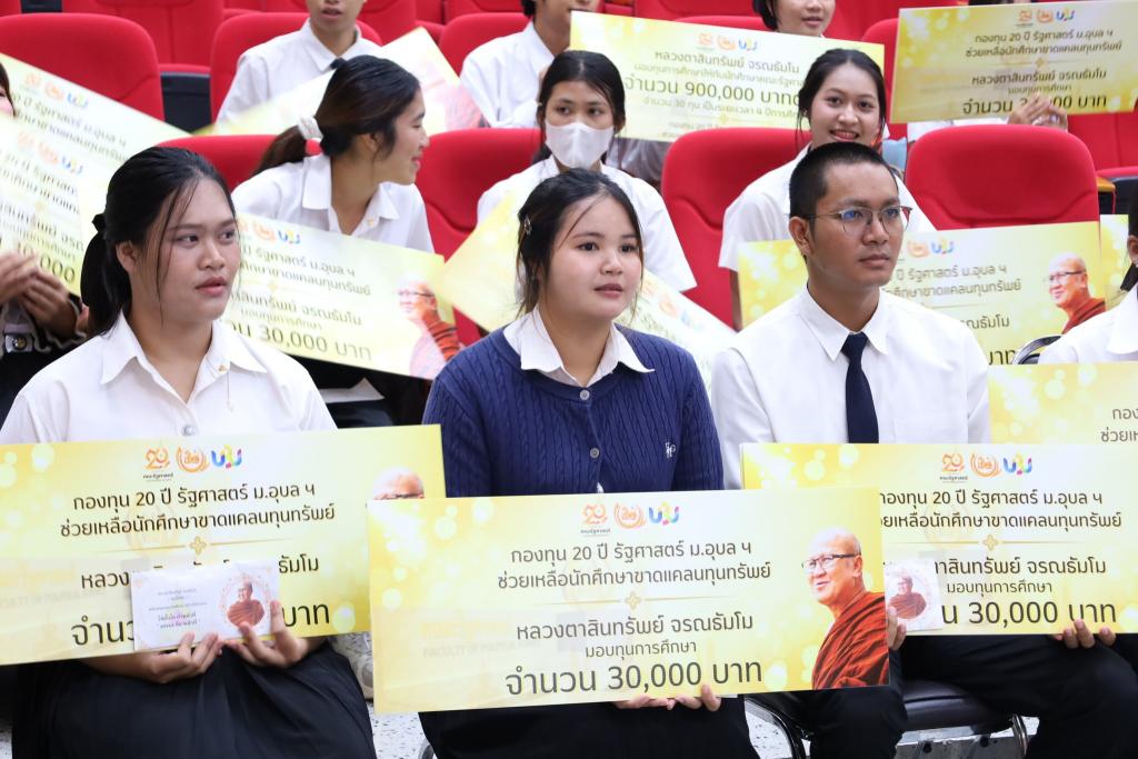 เมื่อวันที่ 17 พฤศจิกายน พ.ศ. 2568 คณะรัฐศาสตร์ มหาวิทยาลัยอุบลราชธานี ได้ให้การต้อนรับ หลวงตาสินทรัพย์ จรณธัมโม ประธานพุทธอุทยานที่พักสงฆ์วัดป่าบ่อน้ำพระอินทร์ อำเภอสิรินธร จังหวัดอุบลราชธานี ในโอกาสให้เมตตาเป็นประธานมอบทุนการศึกษาแก่นักศึกษาคณะรัฐศาสตร์ ภายใต้กองทุน 20 ปี รัฐศาสตร์ ม.อุบลฯ ช่วยเหลือนักศึกษาขาดแคลนทุนทรัพย์ ซึ่งจัดตั้งโดยสมาคมศิษย์เก่าและสโมสรนักศึกษาคณะรัฐศาสตร์ โดยมี ดร.ศิริพร จันทนสกุลวงศ์ คณบดีคณะรัฐศาสตร์ เป็นที่ปรึกษากองทุน