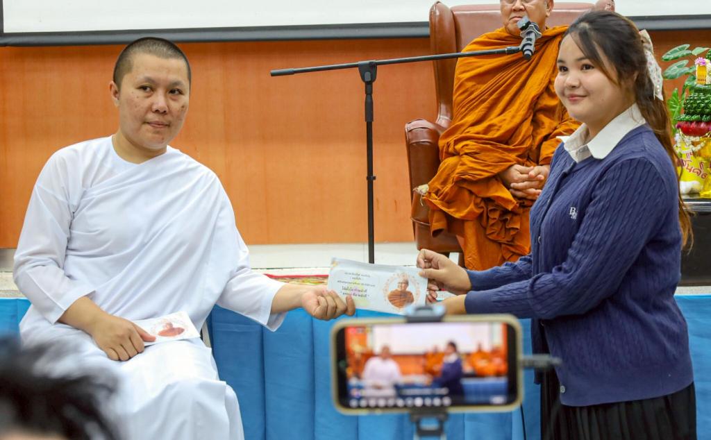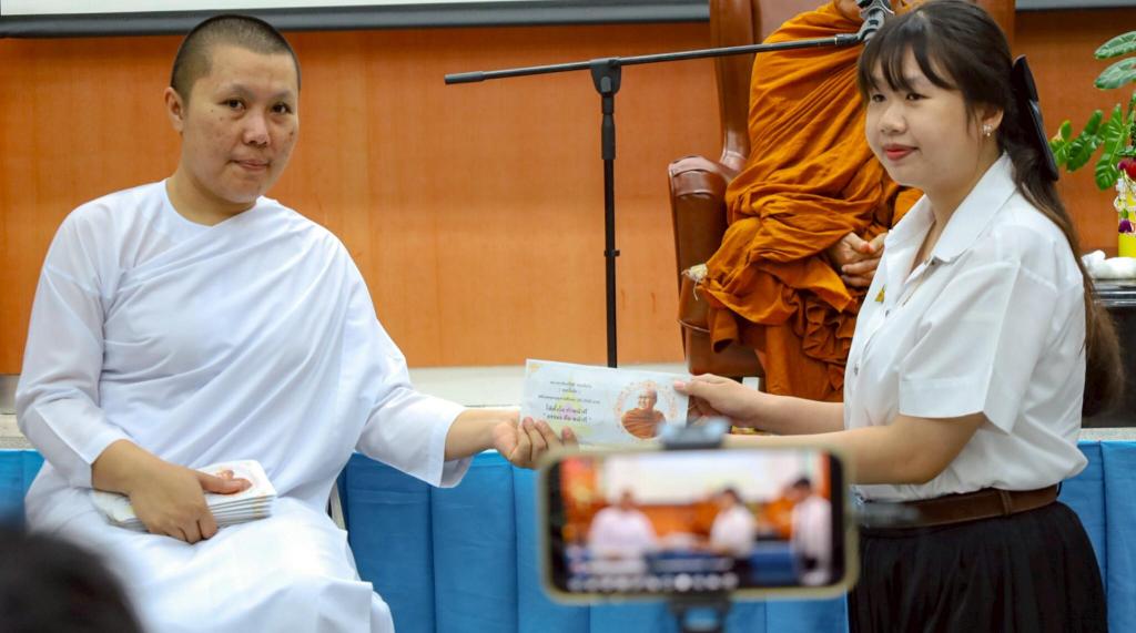 ในโอกาสเดียวกัน หลวงตาสินทรัพย์ จรณธัมโม ได้เมตตามาแสดงธรรมบรรยายหัวข้อ ธรรมะกับวัยรุ่นในยุค AI เพื่อให้เยาวชนได้ตระหนักรู้และนำหลักธรรมไปปรับใช้เป็นแนวทางในการเรียนและการดำเนินชีวิตการสนับสนุนในครั้งนี้ถือเป็นเมตตาธรรมอันทรงคุณค่า ซึ่งไม่เพียงช่วยลดความเหลื่อมล้ำทางการศึกษา แต่ยังเป็นพลังส่งเสริมให้เยาวชนมีแรงบันดาลใจ กำลังใจ และความมั่นคงในการศึกษา ดังที่ ดร.วรุตม์ กล่าวเพิ่มเติมว่า ความเมตตาครั้งนี้มิได้เป็นเพียงการให้เชิงวัตถุ แต่เป็นพลังแห่งการเกื้อกูลที่สะท้อนหัวใจของการศึกษา และสืบสานอุดมการณ์ ‘รัฐศาสตร์เพื่อสังคม’ ที่คณะรัฐศาสตร์ยึดถือมาตลอด 20 ปีแห่งการสถาปนา