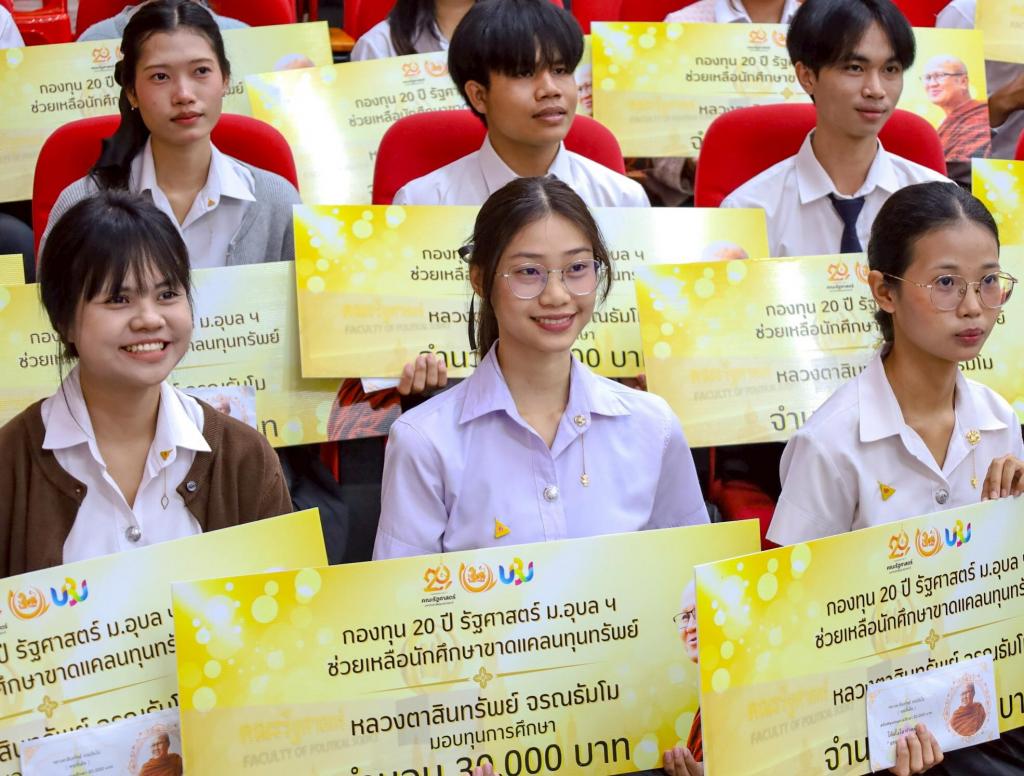 ในปีการศึกษานี้ คณะรัฐศาสตร์ได้รับเมตตาอนุเคราะห์ทุนการศึกษา จำนวน 900,000 บาทต่อปี รวม 30 ทุน ต่อเนื่องเป็นเวลา 4 ปีการศึกษา พร้อมทุนการศึกษาพิเศษเพิ่มเติม รวมเป็นมูลค่าทั้งสิ้น 1,200,000 บาท เพื่อสนับสนุนนักศึกษาที่ขาดแคลนทุนทรัพย์ให้สามารถเข้าถึงโอกาสทางการศึกษาอย่างต่อเนื่องและเท่าเทียม