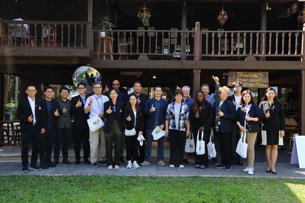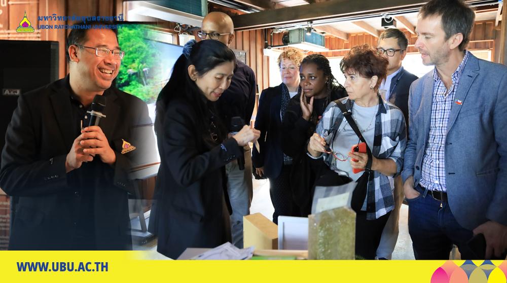 มหาวิทยาลัยอุบลราชธานี โดย ศาสตราจารย์ ดร.ทวนทอง จุฑาเกตุ รองอธิการบดีฝ่ายวิจัยและนวัตกรรม พร้อมคณะผู้บริหาร รองศาสตราจารย์ ดร.จิตรา สิงห์ทอง ผู้ช่วยอธิการบดีฝ่ายบริการวิชาการและมาตรฐานการวิจัย ผู้ช่วยศาสตราจารย์ ดร.อรนุช ปวงสุข ผู้ช่วยอธิการบดีฝ่ายวิเทศสัมพันธ์และการศึกษานานาชาติ และ ผู้ช่วยศาสตราจารย์ ดร.ปิยณัฐ สร้อยคำ ผู้ช่วยอธิการบดีฝ่ายการตลาด ให้การต้อนรับคณะผู้แทนผู้ทรงคุณวุฒิจาก องค์การทรัพย์สินทางปัญญาโลก (WIPO)และผู้เชี่ยวชาญด้านการจัดการทรัพย์สินทางปัญญาจาก 7 ประเทศ ได้แก่ สวิตเซอร์แลนด์ อังกฤษ ตุรกี ชิลี แอฟริกาใต้ ฮ่องกง และไทย และผู้แทนจากสำนักงานพัฒนาวิทยาศาสตร์และเทคโนโลยีแห่งชาติ (สวทช.) ในโอกาสเยี่ยมชมและแลกเปลี่ยนองค์ความรู้ด้านการบริหารจัดการทรัพย์สินทางปัญญา การพัฒนานวัตกรรม และการถ่ายทอดเทคโนโลยี โดยการประสานงาน โครงการอุทยานวิทยาศาสตร์ มหาวิทยาลัยอุบลราชธานี และสำนักงานส่งเสริมบริหารงานวิจัยฯ ณ ร้านอาหารเฮือนกำนัน มหาวิทยาลัยอุบลราชธานี เมื่อวันที่ 22 พฤศจิกายน 2568 ที่ผ่านมา