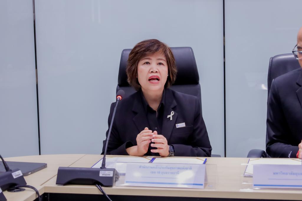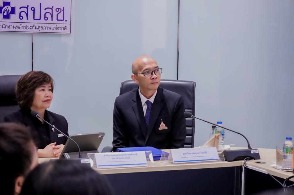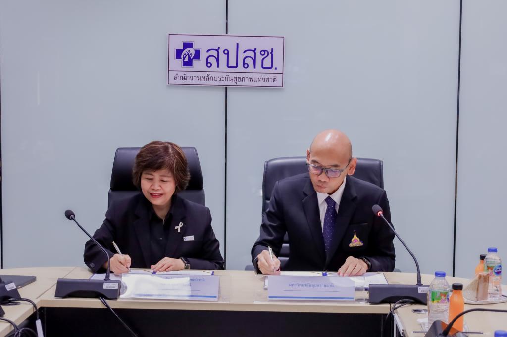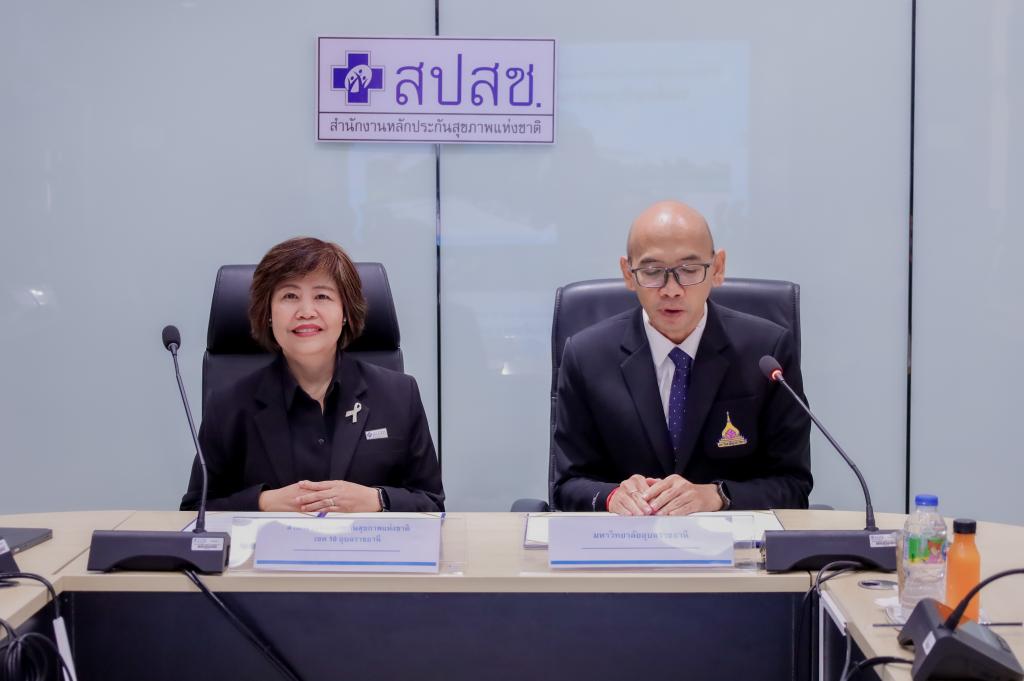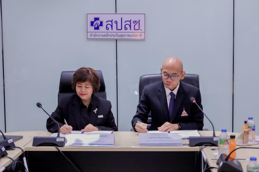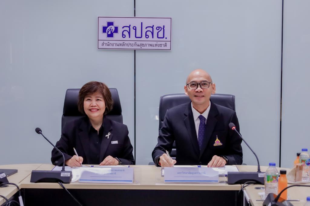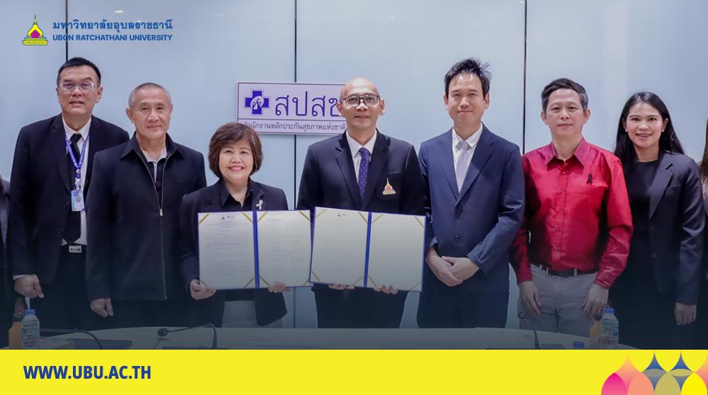พิธีลงนามบันทึกข้อตกลงความร่วมมือทางวิชาการ (MOU) “ด้านการวิจัยและแลกเปลี่ยนองค์ความรู้ทางวิชาการ เรื่อง การพัฒนางานวิจัยและบริการสุขภาพ จากระบบข้อมูลสารสนเทศสุขภาพด้านการบริการสาธารณสุขของสำนักงานหลักประกันสุขภาพแห่งชาติ” ระหว่างมหาวิทยาลัยอุบลราชธานี โดย คณะเภสัชศาสตร์ กับ สำนักงานหลักประกันสุขภาพแห่งชาติเขต สปสช.เขต 10 อุบลราชธานี โดยมี ดร.ศักดิ์สิทธิ์ ศรีภา คณบดีคณะเภสัชศาสตร์ รับมอบอำนาจจากอธิการบดีมหาวิทยาลัยอุบลราชธานี พร้อมด้วย ผศ.พีรวัฒน์ จินาทองไทย รองคณบดีฝ่ายแผนและสารสนเทศ และผศ.ดร.แสวง วัชระธนกิจ ร่วมลงนามกับ นางมลุลี แสนใจ ผู้อำนวยการสำนักงานหลักประกันสุขภาพแห่งชาติ เขต 10 อุบลราชธานี พร้อมด้วยผู้บริหาร เพื่อพัฒนา บุคลากร เครื่องมือ ระบบ และกลไก ในการดูแลผู้ป่วย โดยการบริบาลทางเภสัชกรรมในผู้ป่วย การส่งเสริมและพัฒนางานวิจัย เพื่อพัฒนาแหล่งฝึกปฏิบัติงานวิชาชีพทางเภสัชศาสตร์ที่มีคุณภาพมาตรฐานตามเกณฑ์สภาวิชาชีพกำหนด เพื่อรองรับการฝึกทักษะทางวิชาชีพแก่นักศึกษาเภสัชศาสตร์ของมหาวิทยาลัยอุบลราชธานี เมื่อวันที่ 28 พฤศจิกายน 2568 ณ สำนักงานหลักประกันสุขภาพแห่งชาติ เขต 10 อุบลราชธานี
