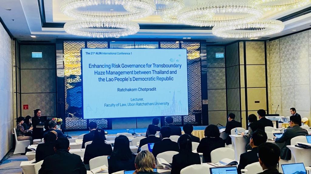 พร้อมนี้ ได้ร่วมนำเสนอโครงการวิจัย “การยกระดับธรรมาภิบาลการจัดการความเสี่ยงจากปัญหาหมอกควันข้ามแดน ประเทศไทย–สปป.ลาว” ในการประชุมนานาชาติ The 21st ALIN International Conference ณ โรงแรม Crowne Plaza Vientiane สาธารณรัฐประชาธิปไตยประชาชนลาวอีกด้วย โดยมี คณะผู้วิจัยที่ร่วมเดินทางและนำเสนอผลงานได้แก่ ดร. รัชกร โชติประดิษฐ์ ผู้นำเสนอและหัวหน้าโครงการวิจัย คณะนิติศาสตร์ มหาวิทยาลัยอุบลราชธานี ดร. กิตติพงษ์ เพียรพิทักษ์ คณะรัฐศาสตร์ มหาวิทยาลัยอุบลราชธานี และ อาจารย์ หนูทัก มณีวงศ์ คณะนิติศาสตร์และรัฐศาสตร์ มหาวิทยาลัยจำปาสัก