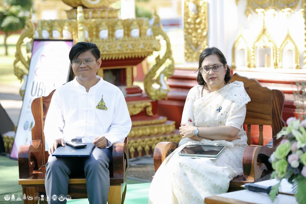 ด้าน Ms. Paulomi Tripathiอุปทูตอินเดีย กล่าวชื่นชมจังหวัดอุบลราชธานีที่มุ่งสู่การเป็น “เมืองกัมมัฏฐานโลก” (World Meditation City) และส่งเสริมให้ประชาชนแสวงหาความสงบผ่านการทำสมาธิและสติ เพื่อสุขภาวะทางกายและใจ อีกทั้งยังเน้นย้ำถึงสายสัมพันธ์ทางวัฒนธรรมอันแน่นแฟ้นระหว่างอินเดียและอุบลราชธานี และพร้อมส่งเสริมความร่วมมือด้านศาสนา วัฒนธรรม และความสัมพันธ์ระหว่างประชาชนร่วมกัน นางสาวพิศทยา ไชยสงคราม นายกเทศมนตรีนครอุบลราชธานี ยืนยันบทบาทท้องถิ่นในการสนับสนุนพื้นที่สาธารณะเพื่อสร้างบรรยากาศแห่งธรรม เมืองแห่งสมาธิ และขับเคลื่อนอัตลักษณ์ท้องถิ่นสู่ความภาคภูมิใจในระดับสากล จากนั้น นายสฤษดิ์ วิฑูรย์ ประธานที่ปรึกษามูลนิธิหลวงปู่มั่น ภูริทัตโต 150 ปีชาตกาล จังหวัดอุบลราชธานี กล่าวว่าโครงการดังกล่าวจะสร้างเศรษฐกิจศรัทธา และเพิ่มมูลค่าการท่องเที่ยวเชิงธรรมะ ให้กับจังหวัดอุบลราชธานีได้ในอนาคต ในขณะที่ ผศ.ดร.ปิยณัฐ สร้อยคำ ผู้ช่วยอธิการบดี ม.อุบลราชธานี ย้ำบทบาทมหาวิทยาลัยในการสร้างองค์ความรู้ วิจัย และความร่วมมือสากล เพื่อยกระดับคุณภาพชีวิตแบบบูรณาการกาย–ใจ–จิตวิญญาณ