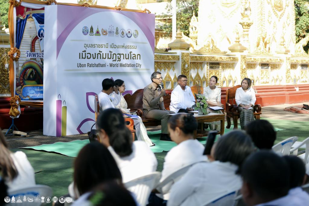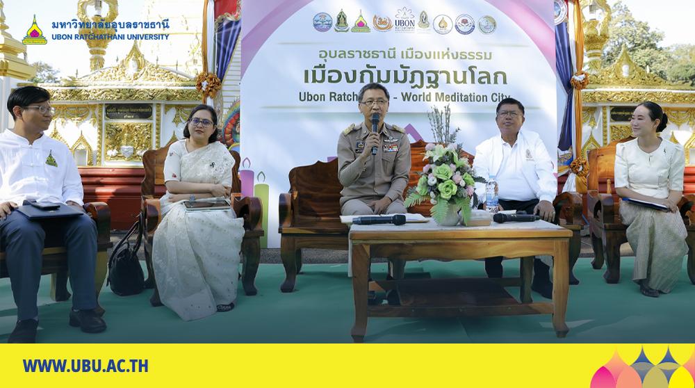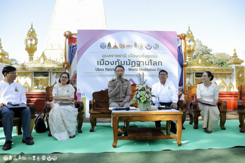 จังหวัดอุบลราชธานี ร่วมกับ สำนักงานวัฒนธรรมจังหวัด มหาวิทยาลัยอุบลราชธานี และภาคีเครือข่ายทั้งในและต่างประเทศ จัดแถลงข่าวเปิดโครงการ “อุบลราชธานี : เมืองแห่งธรรม เมืองกัมมัฏฐานโลก (World Meditation City)” ประจำปีงบประมาณ 2569 เพื่อขับเคลื่อนจังหวัดอุบลราชธานี ก้าวสู่ศูนย์กลางสมาธิ สติ และการท่องเที่ยวเชิงธรรมะระดับสากล ได้รับเกียรติจากนายภูษิต น้อยโสภากุล รองผู้ว่าราชการจังหวัดอุบลราชธานี เป็นประธานในพิธี เมื่อวันที่ 11 ธันวาคม 2568 เวลา 09.00–10.30 น. ณ วัดพระธาตุหนองบัว จังหวัดอุบลราชธานี