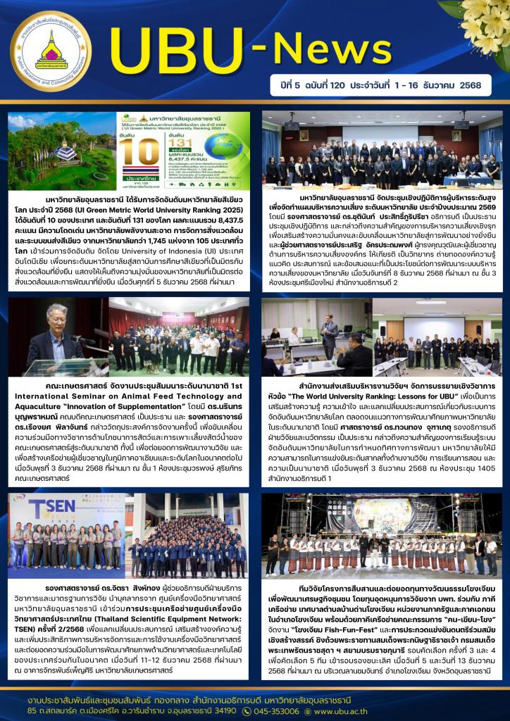 UBU NEWS ปีที่ 5 ฉบับที่ 120 ประจำวันที่ 1 - 16 ธันวาคม 2568